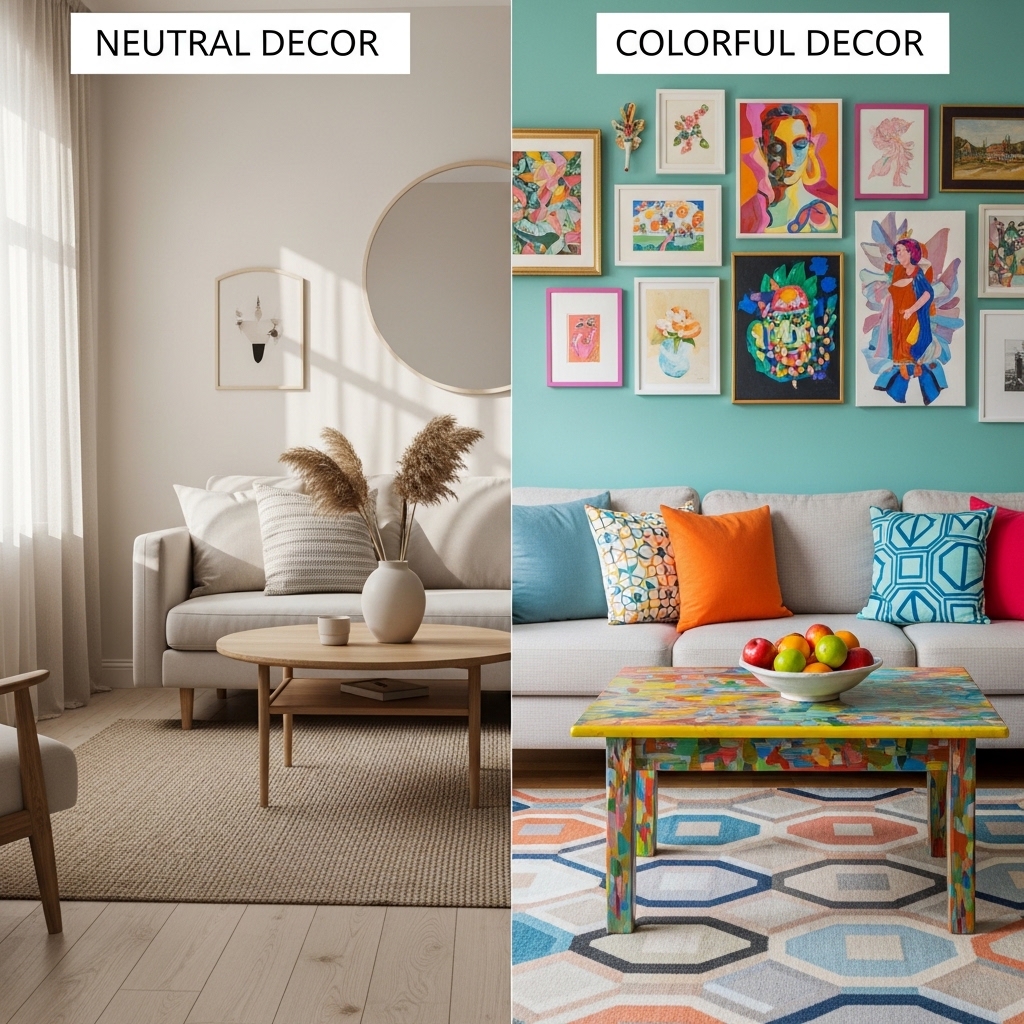 Neutral decor is calm, timeless, and flexible. Colorful decor is bold, personal, and energetic. Neither is objectively better. The right choice depends on you.