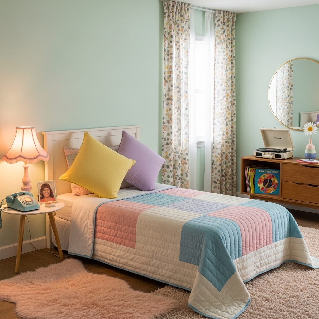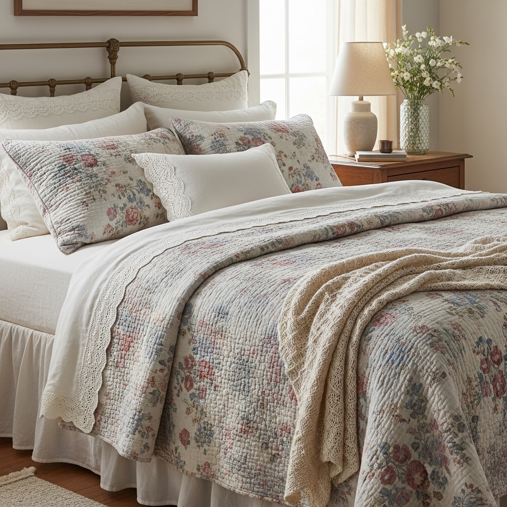 Pro Tip: Choose floral or patchwork quilts to enhance the nostalgic vibe.