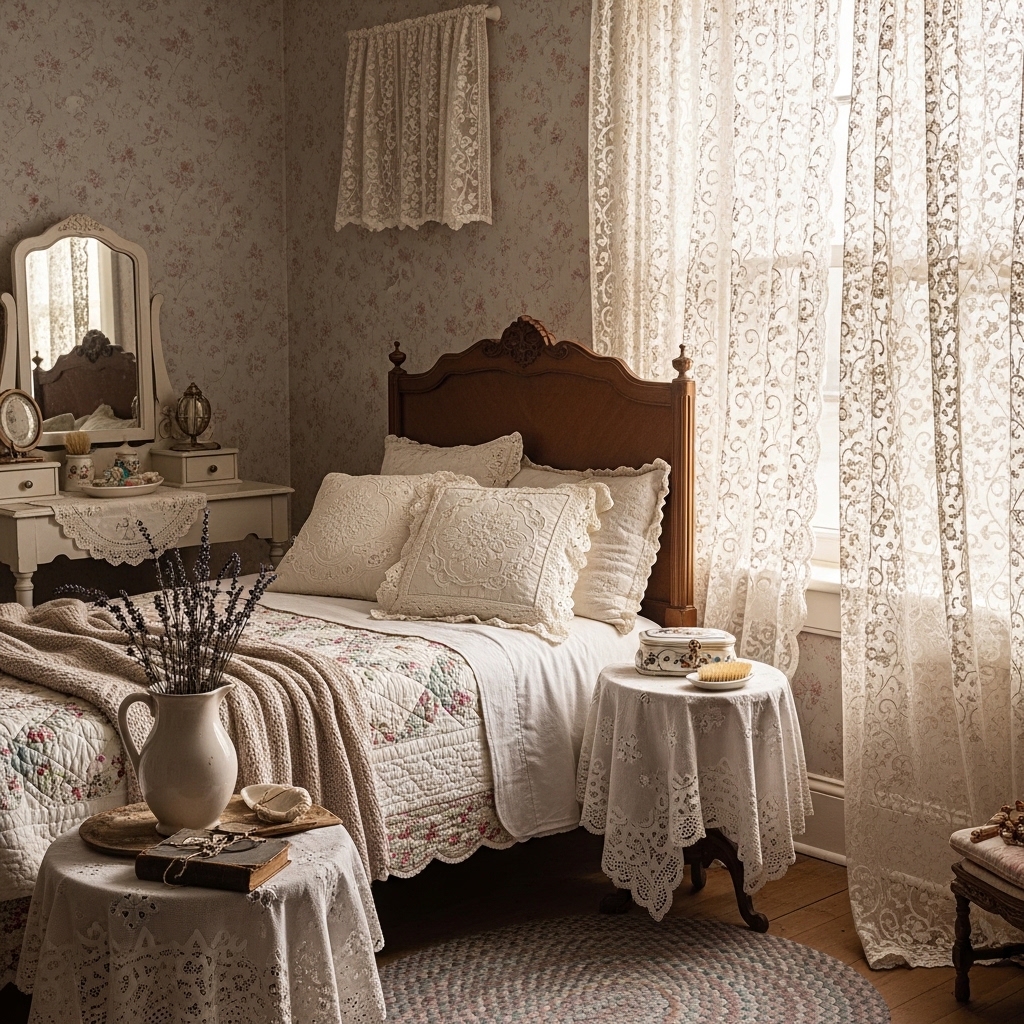 Pro Tip: Pair lace curtains with neutral wall colors for a balanced vintage look.