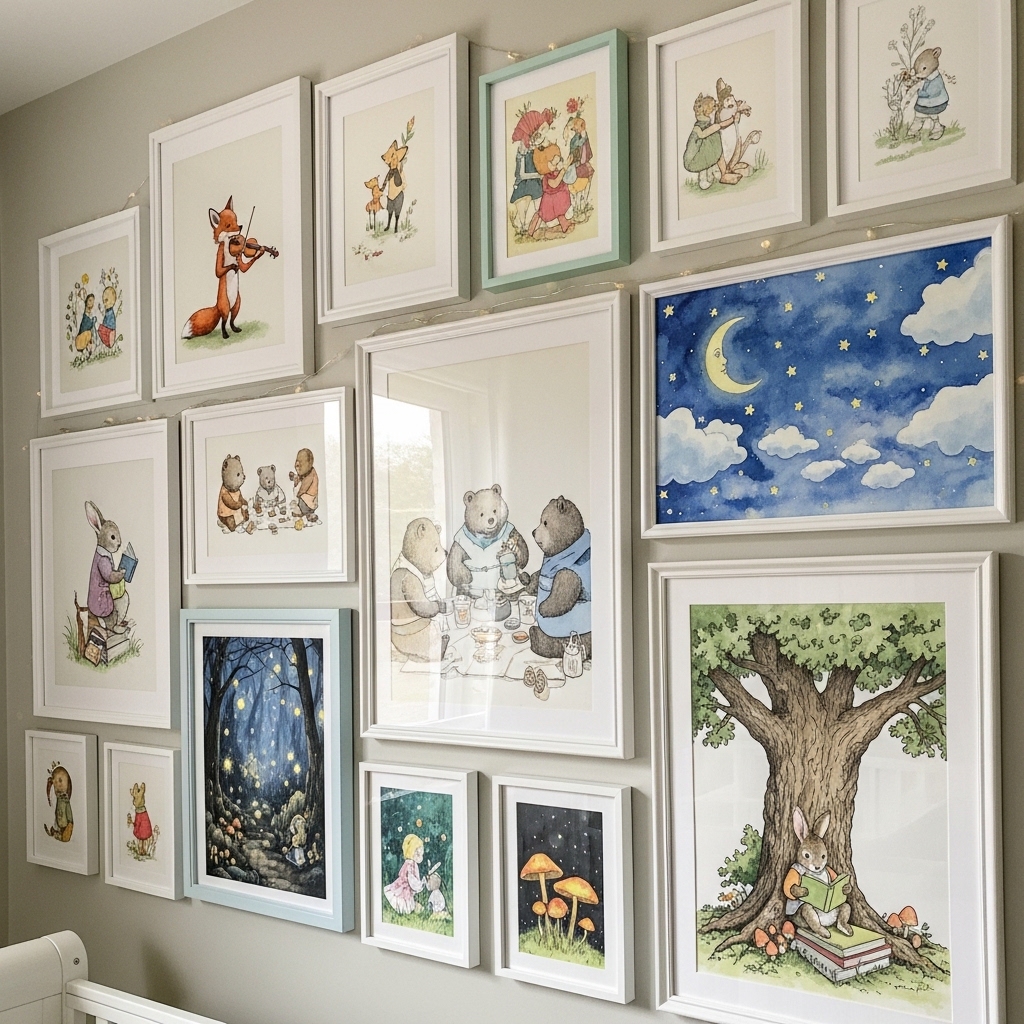 4. Create a Gallery Wall of Framed Children’s Book Illustrations
