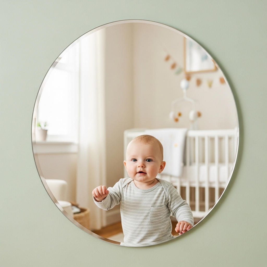 10. Hang a Large Round Acrylic Mirror at Baby Height