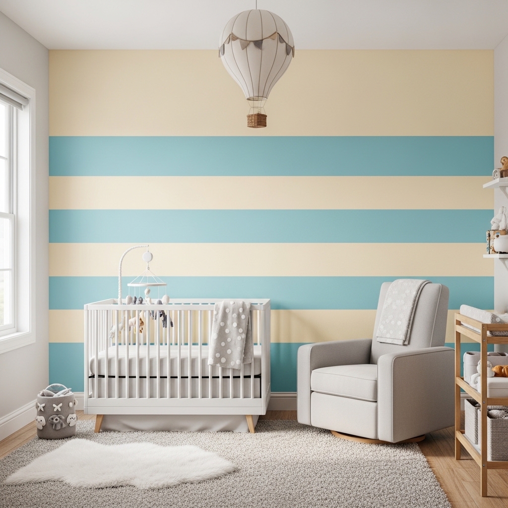 Solid color walls look fine but never excite. Stripes make your nursery feel designed and intentional.