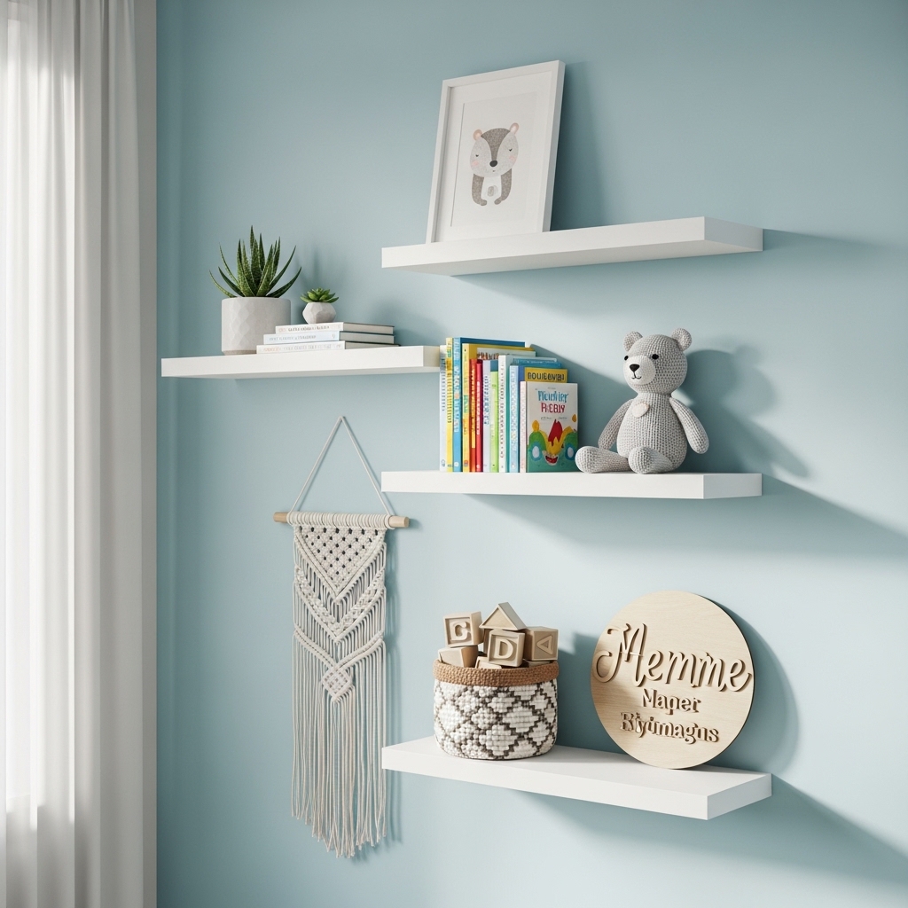 Use this idea when you want functional decor that displays books, toys, and keepsakes.