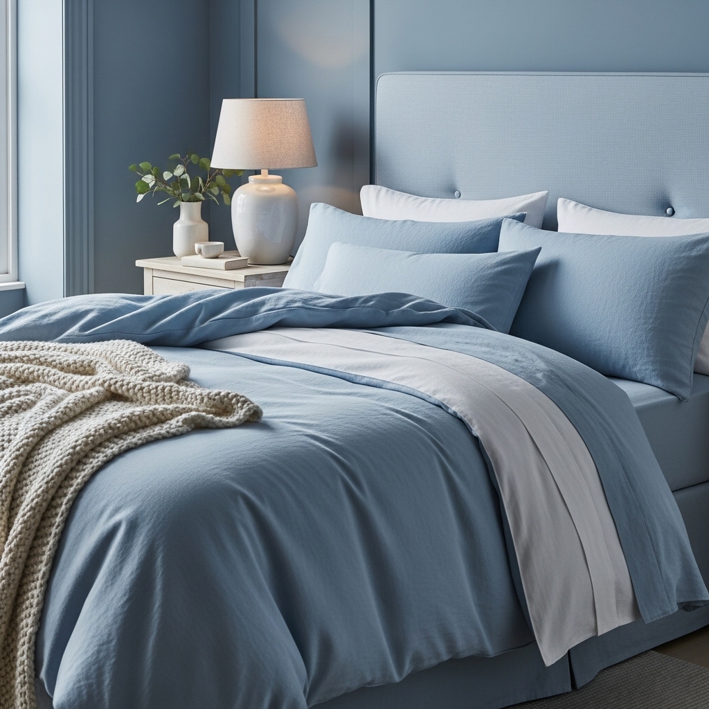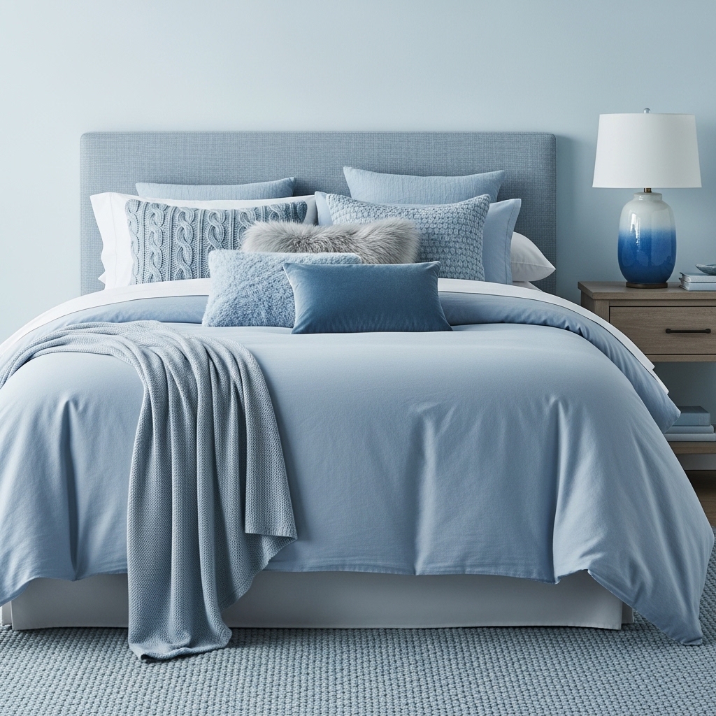 Pro Tip: Mix powder blue bedding with neutral throws to create depth and texture.