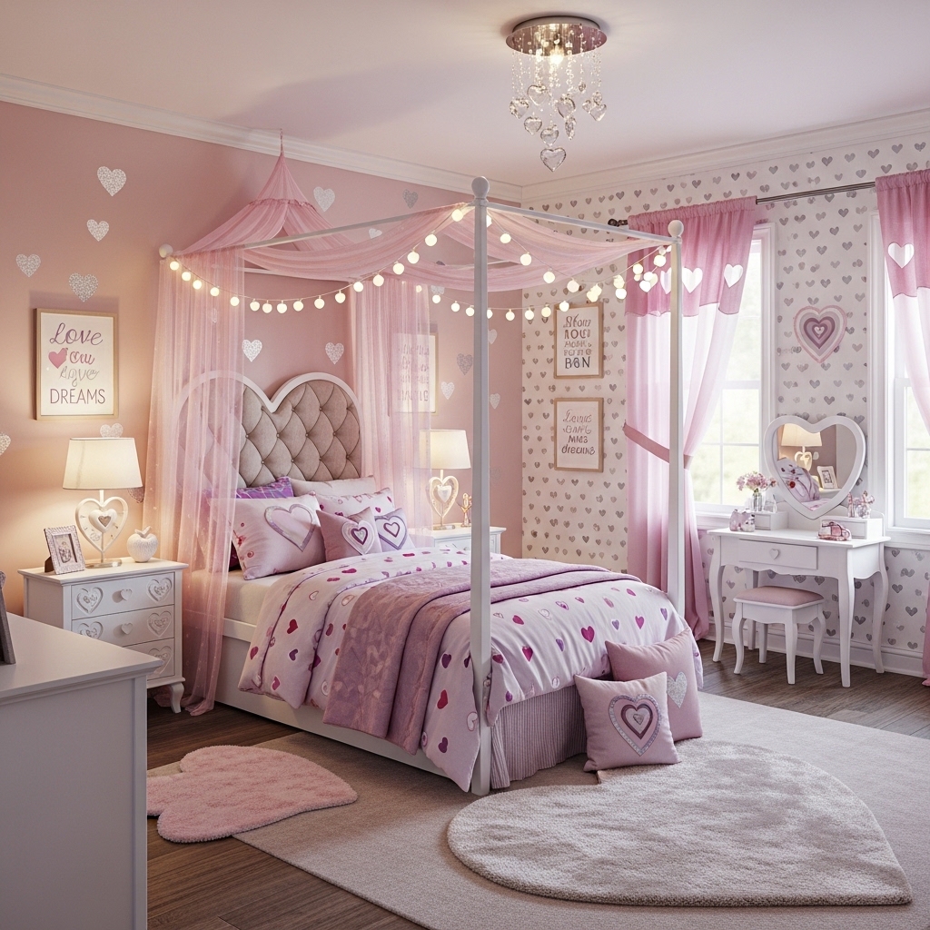12 Heart-Themed Princess Bedroom Ideas for Girls to Create a Magical Dream Room