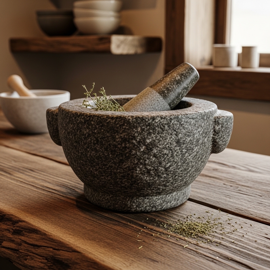 14. Place a Stone Mortar and Pestle on the Counter