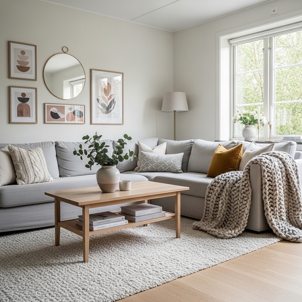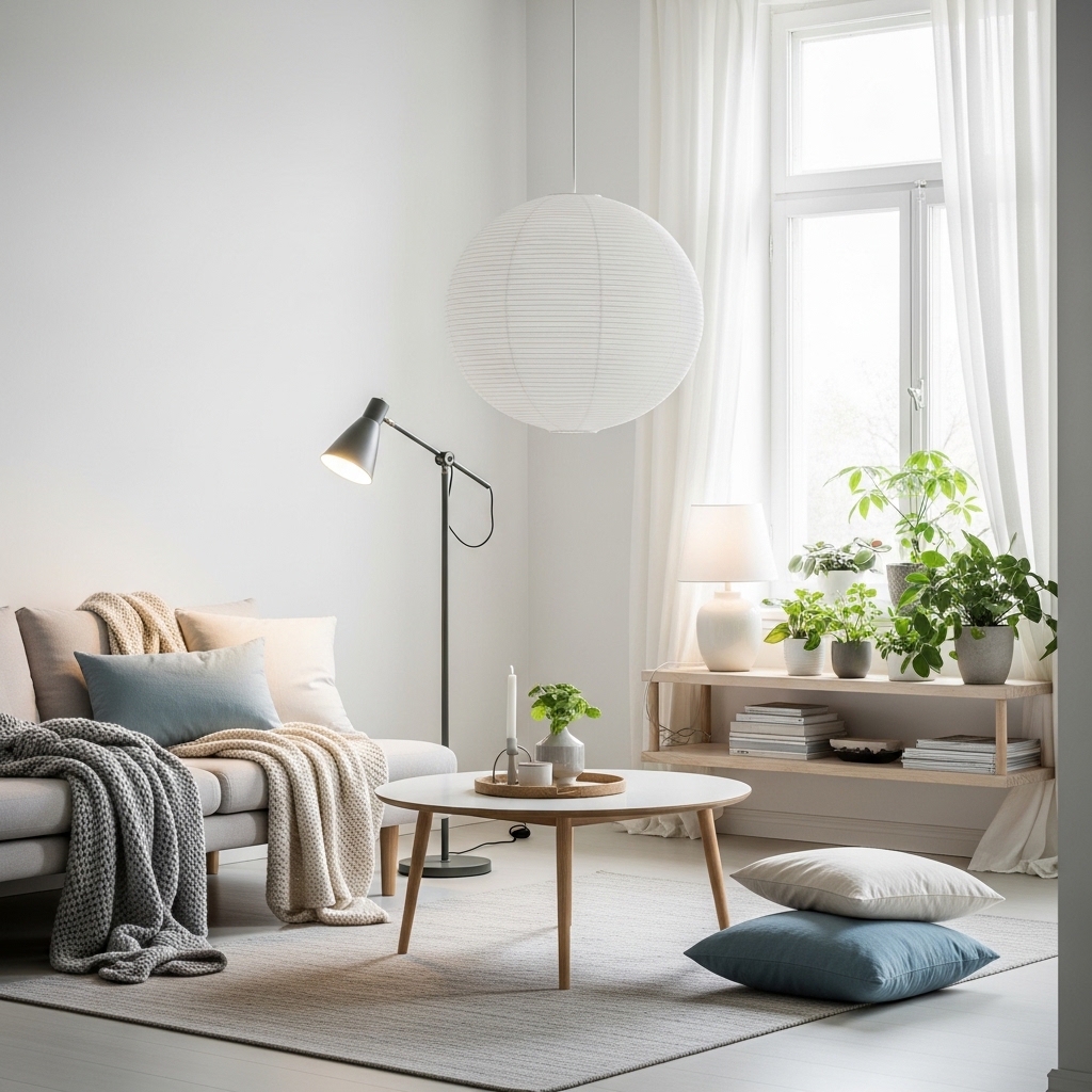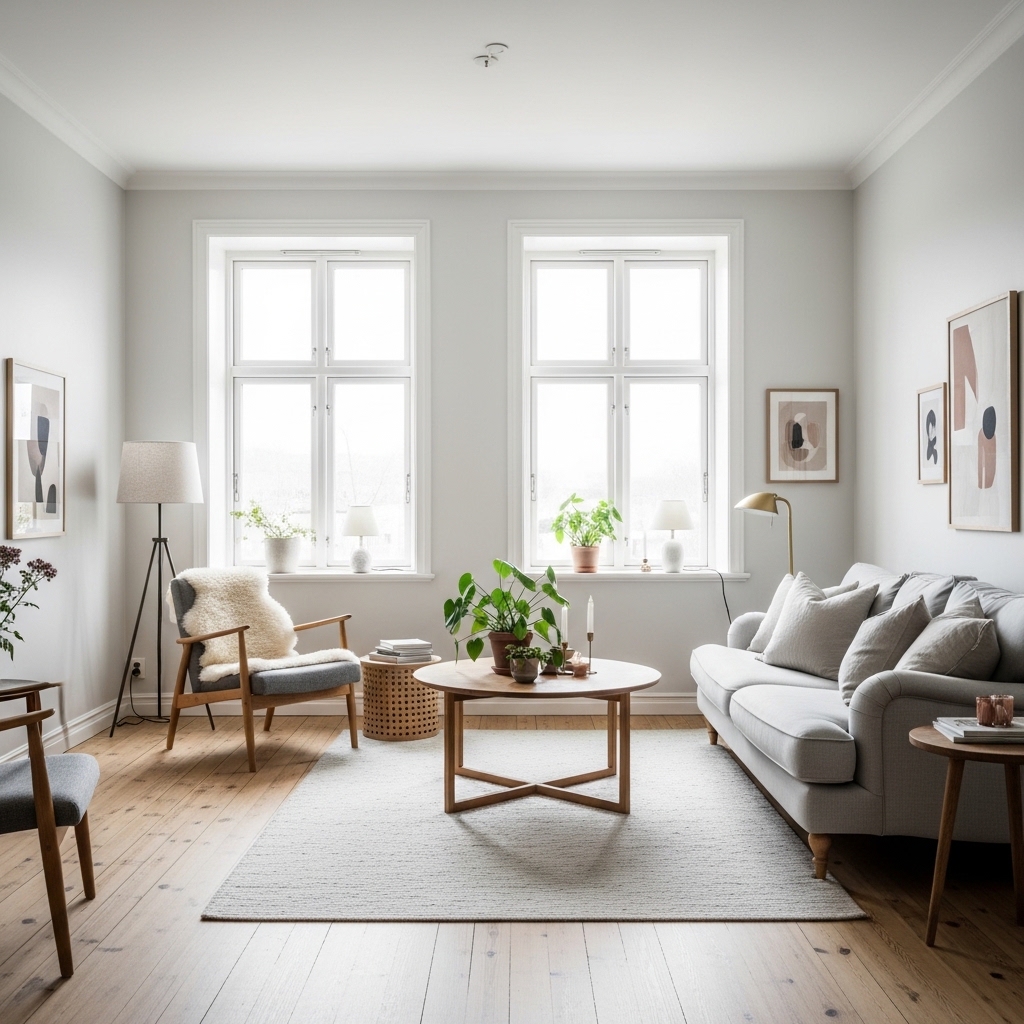 To avoid a cold look, layer warm textures like wood, wool, or soft textiles for that cozy Nordic vibe.
