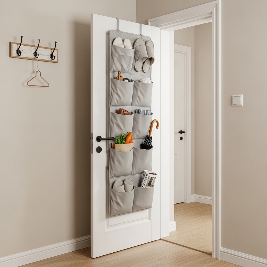 Install over-the-door organizers for shoes, accessories, or cleaning supplies. Use doors in bedrooms, bathrooms, and kitchens.
