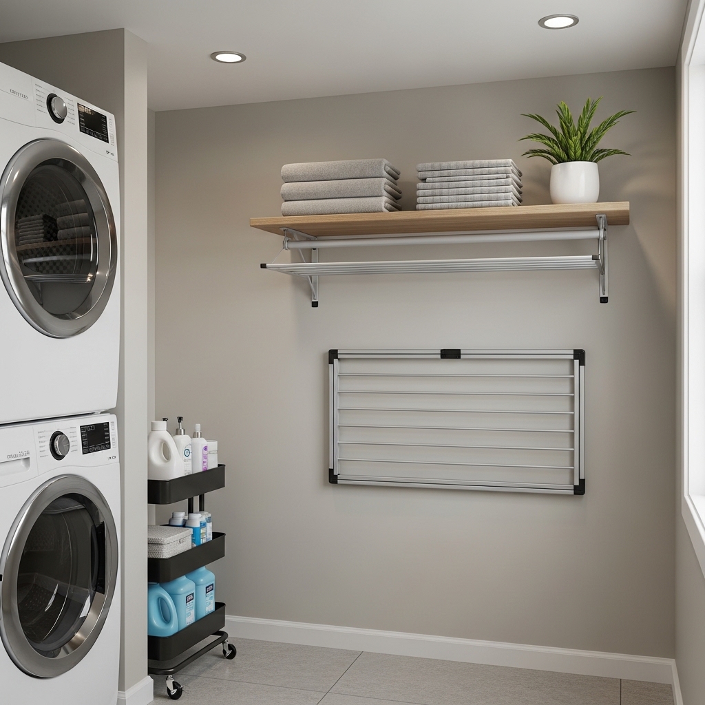 Pro Tip: Install your rack above your washer or sink. Drips fall directly into the sink or onto the machine, not your floor.