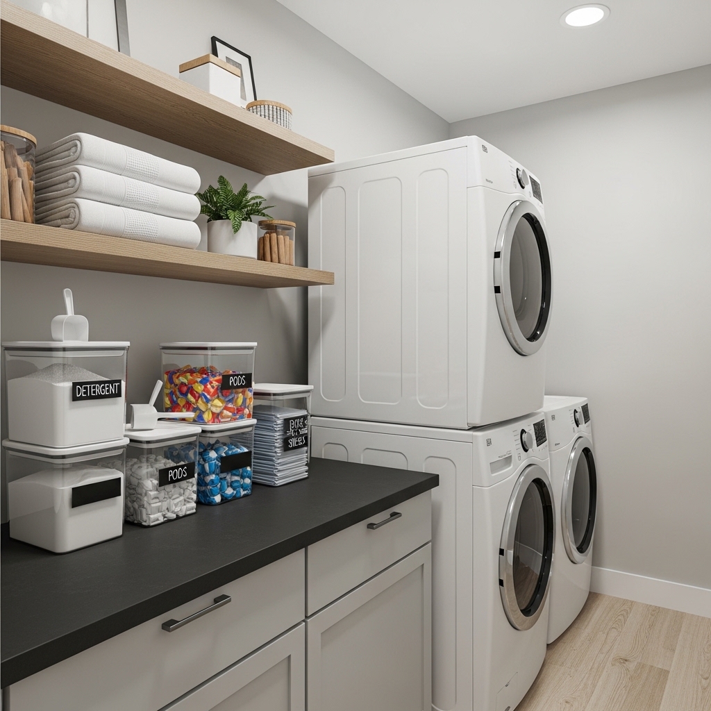 Store detergent in clear, stackable containers that save space and look beautiful.