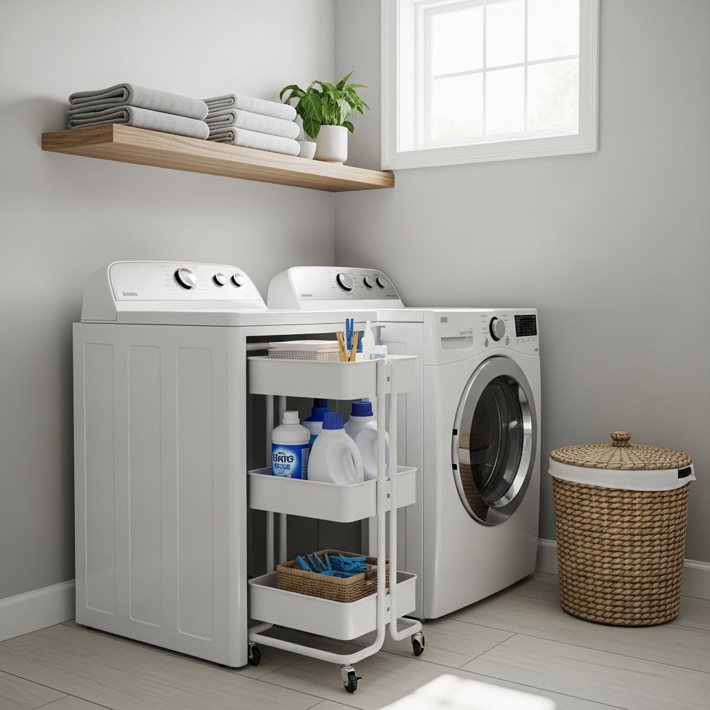 Use the cart for detergent pods, dryer sheets, stain pens, and lint rollers.