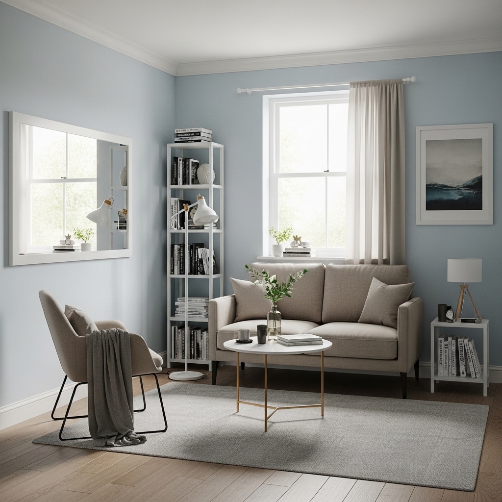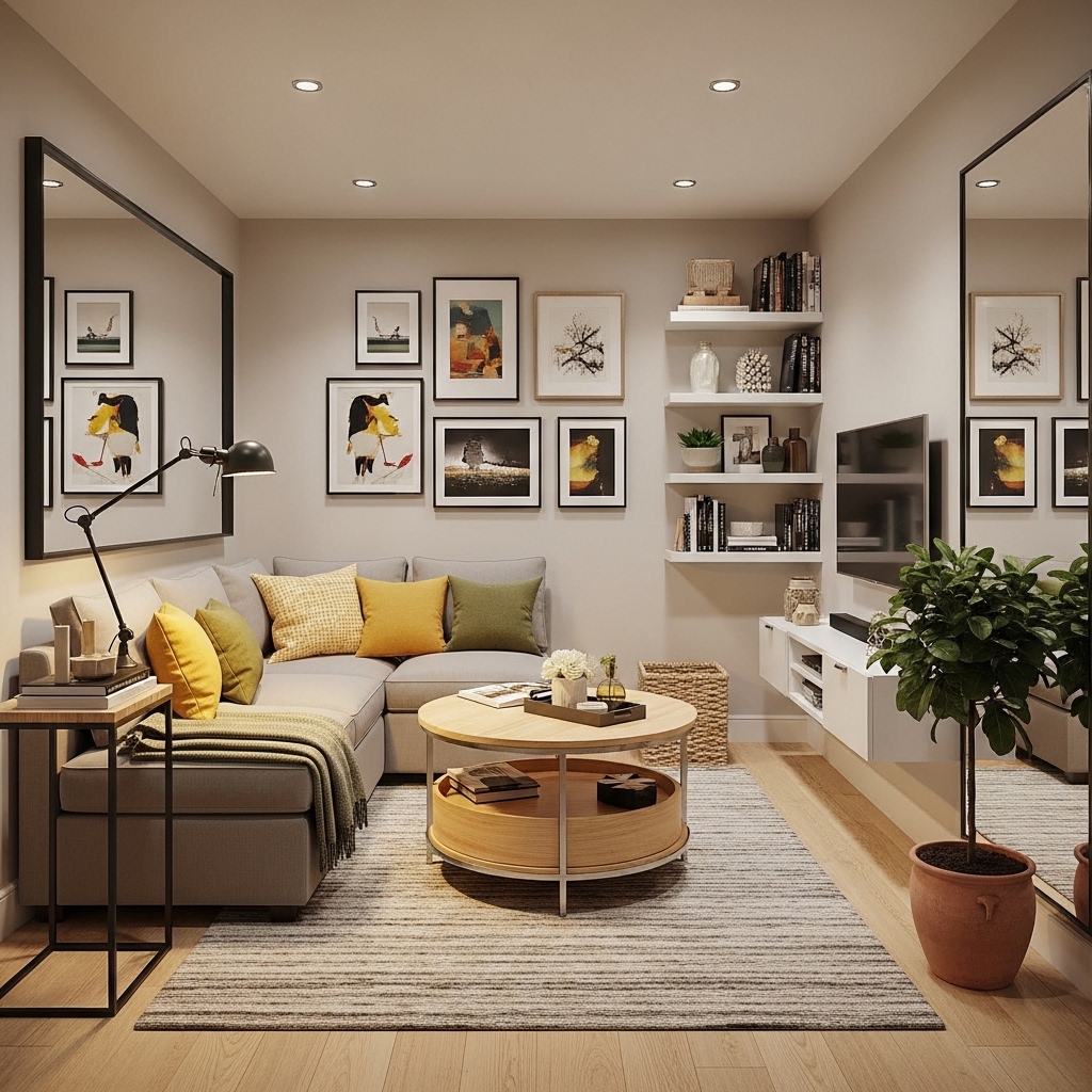This technique is widely used in small living room decor ideas because it adds brightness without adding physical objects.