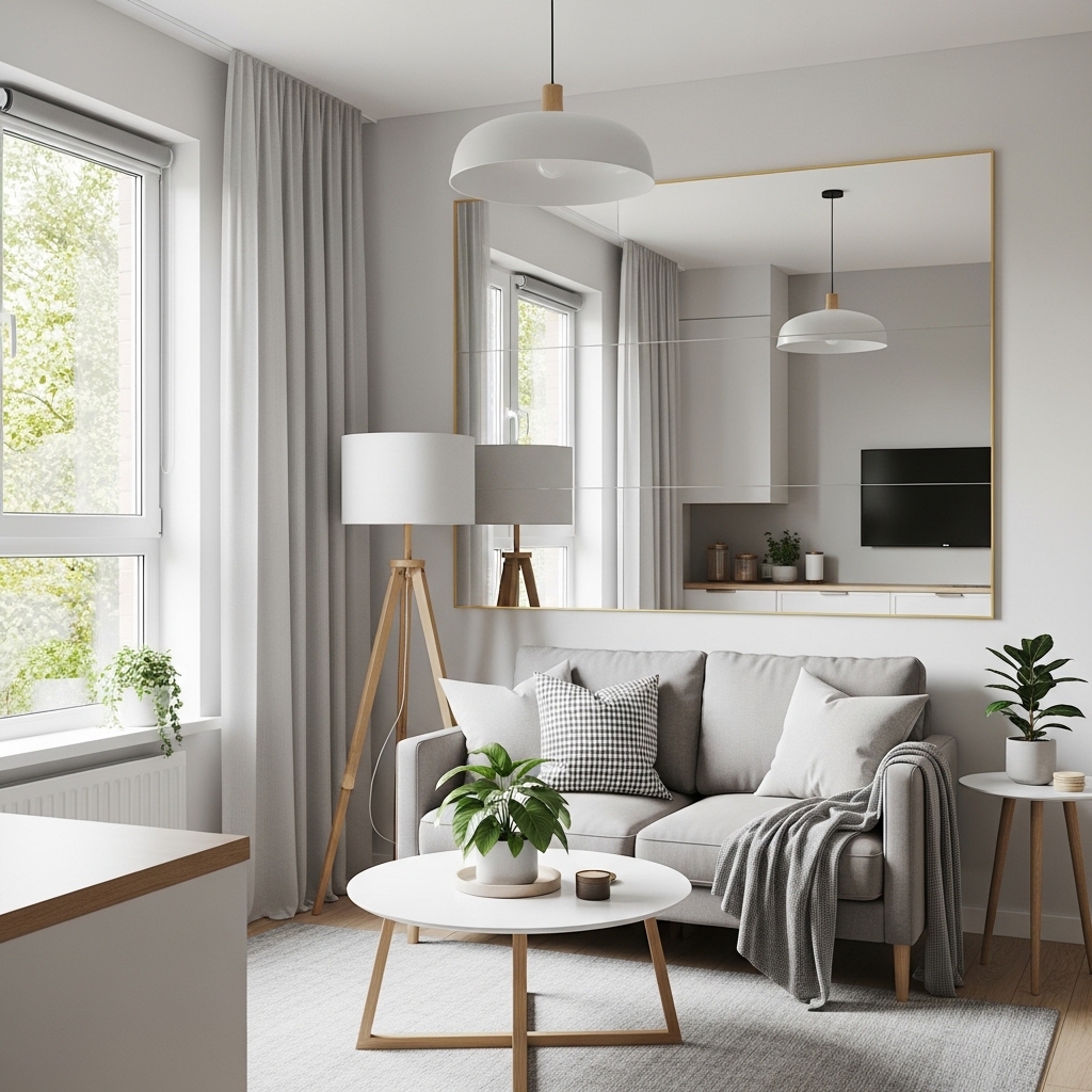 Mirrors are not just decor—they are a powerful spatial tool. When placed opposite a window or light source, they reflect light and visually double the perceived size of your room.