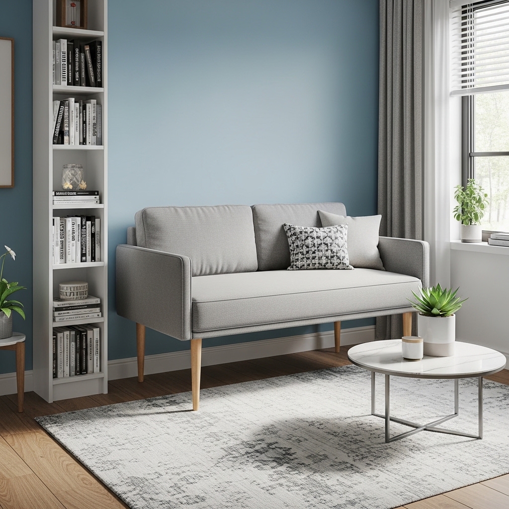 Bulky sofas are the fastest way to make a small living room feel cramped. Choose a slim-profile sofa with clean lines and raised legs to create visual lightness.