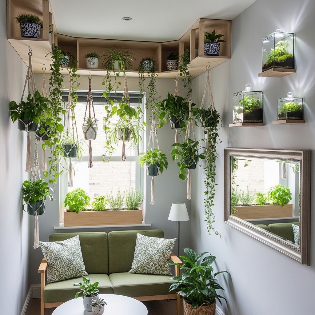 Plants add life and freshness, but in small rooms, placement matters. Use hanging planters, wall-mounted pots, or slim vertical stands.