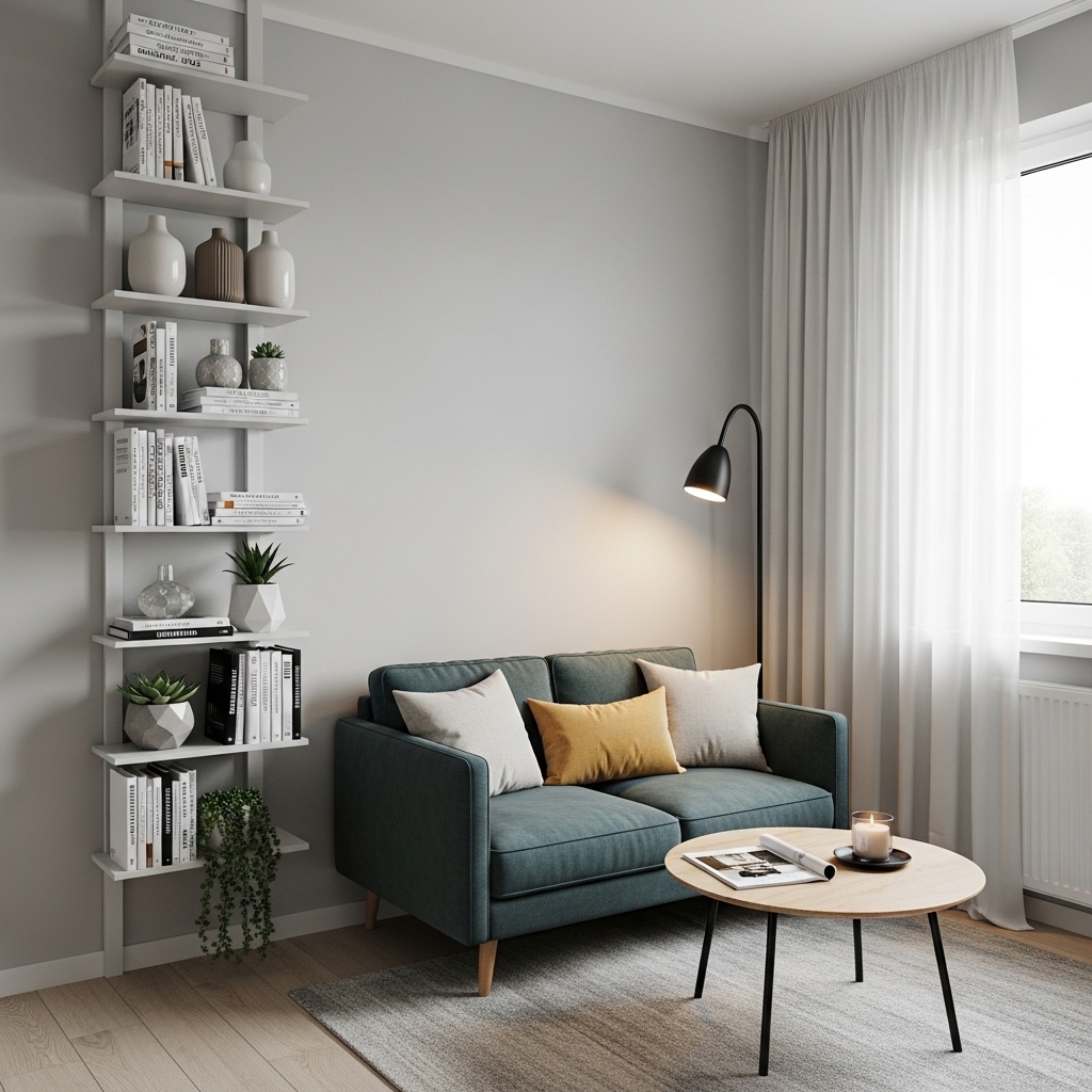 When floor space is limited, vertical space becomes your biggest asset. Tall shelves, wall-mounted cabinets, and floating units draw the eye upward and free up valuable floor area.