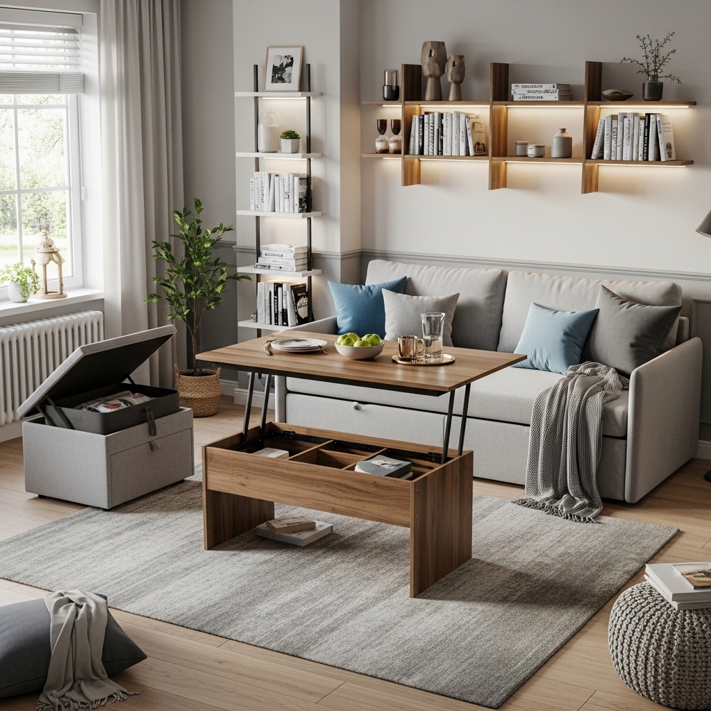 In a small living room, every piece of furniture must earn its place. Opt for multi-functional furniture like storage ottomans, lift-top coffee tables, or sofas with hidden compartments.