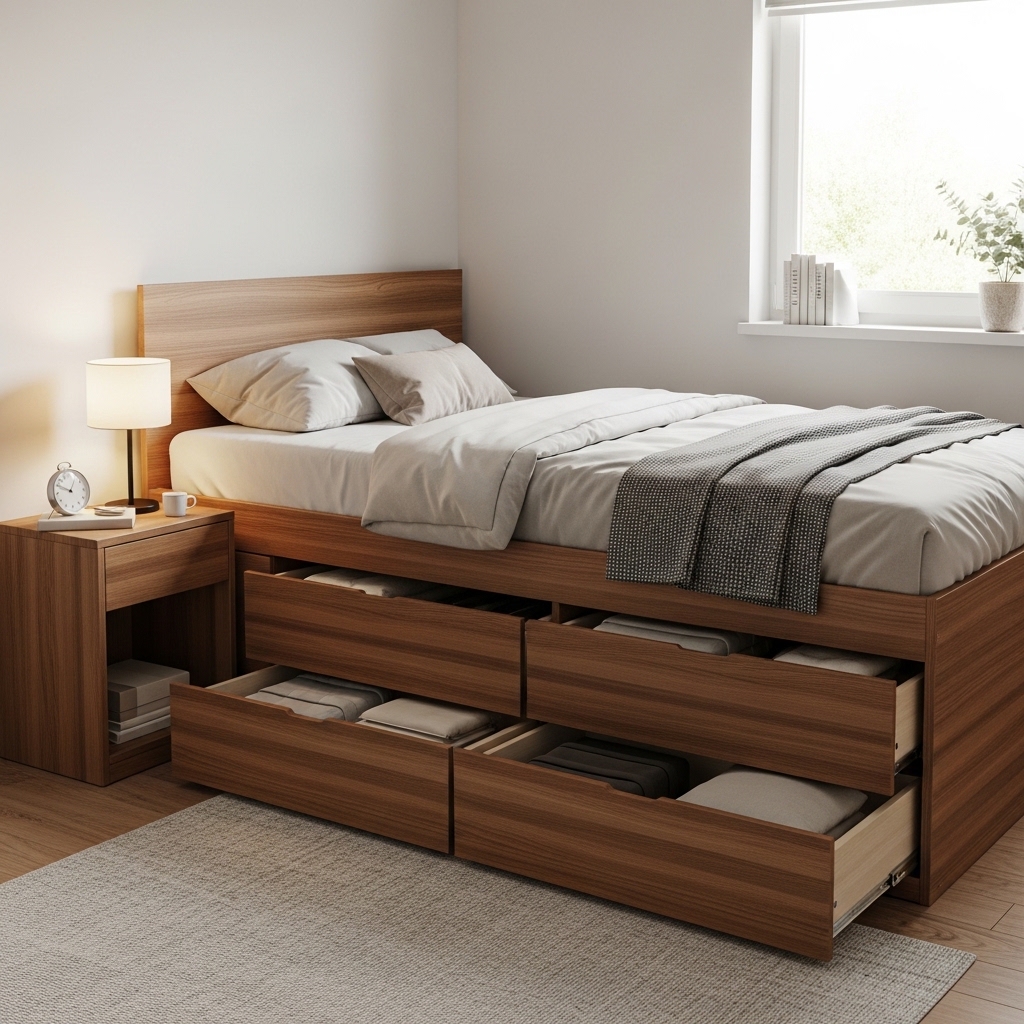 Pro Tip: Choose a bed with drawers on both sides. The storage doubles.