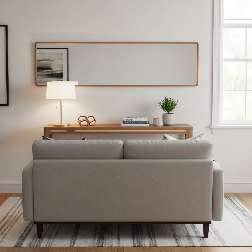 Place a narrow console table behind the sofa. Use it for a lamp, books, or a drink. The table will not block the walking path.