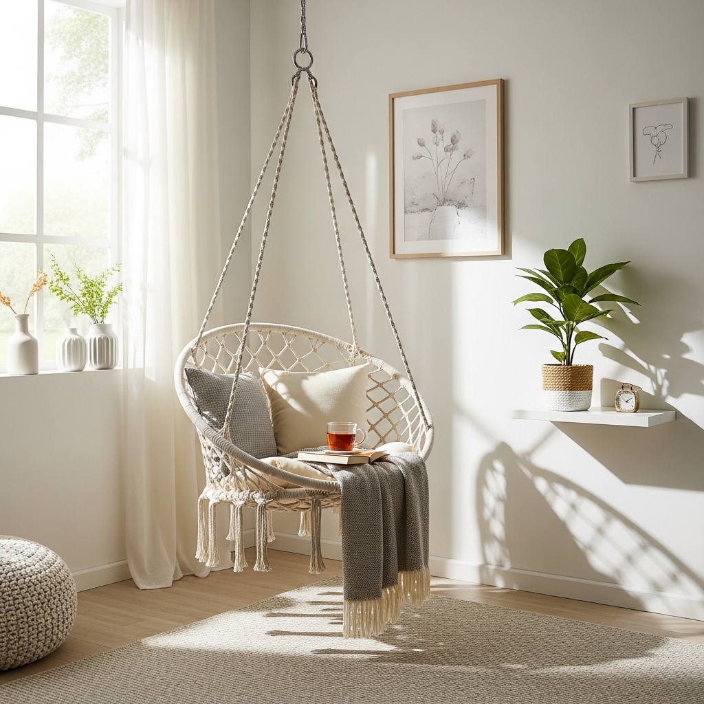 Mistake to Avoid: Do not hang a chair in a low-ceiling room. The chair needs room to swing.