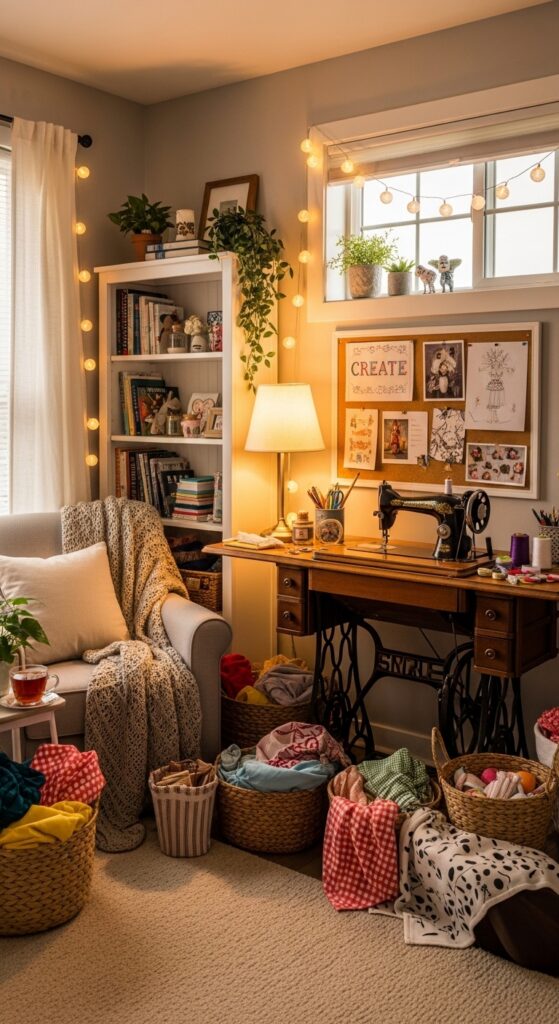 A sewing room should feel inspiring and comfortable. Add small decorative touches like indoor plants, framed art, or a soft rug to make the space more inviting.