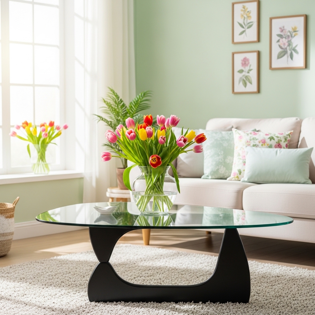 A coffee table needs a centerpiece. Fresh tulips are the answer.