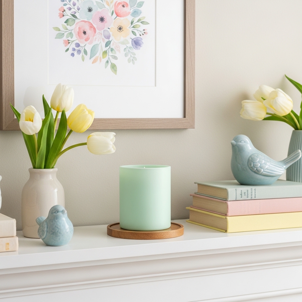 Place a large pillar candle in pink, blue, or green. Light it in the evening. The glow will be soft.