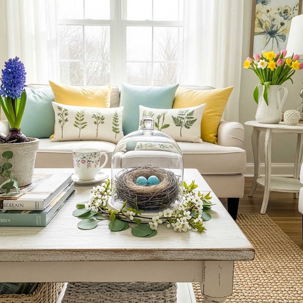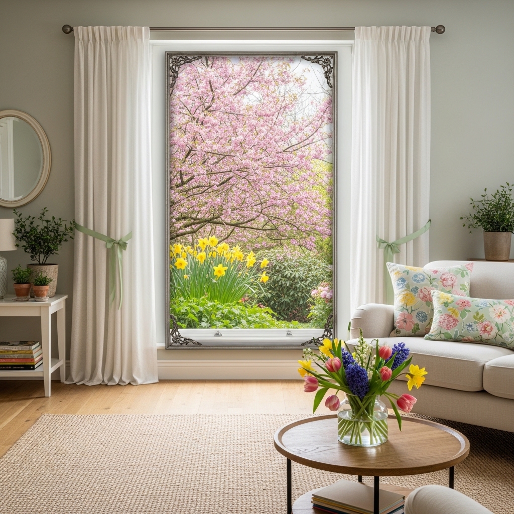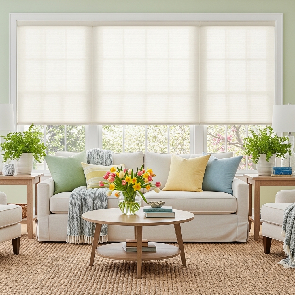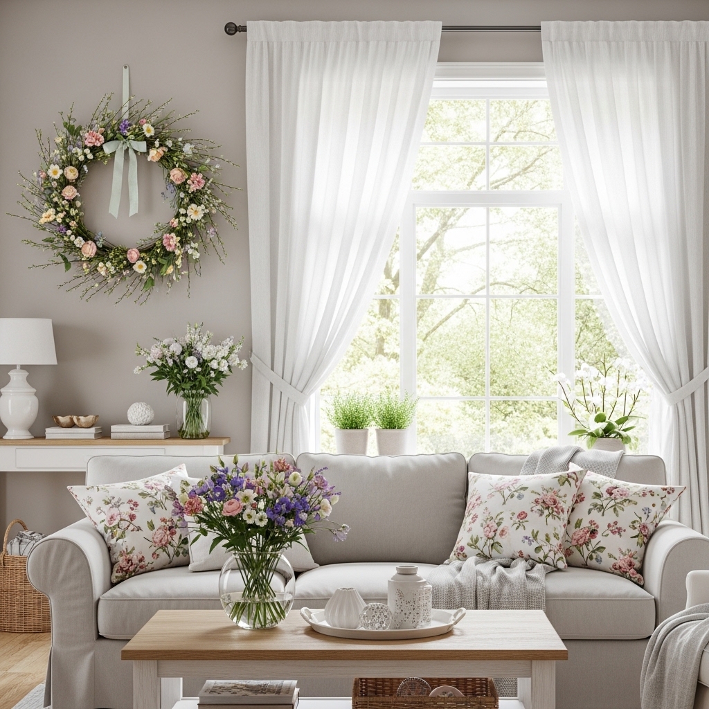 Spring demands change. Lighter fabrics. Brighter colors. Open windows. The living room should feel awake again.