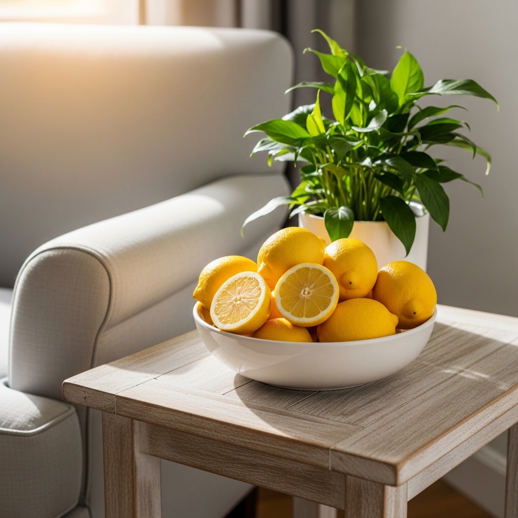 Fill a ceramic bowl with fresh lemons. Place it on a side table. The yellow will pop against neutral walls.