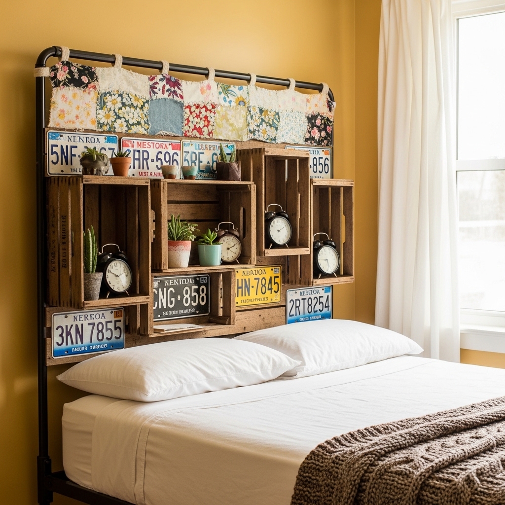 A unique headboard can be created using thrifted items such as old doors, wooden panels, or vintage screens. Repurposing these materials allows you to design a one-of-a-kind focal point for the bed area.