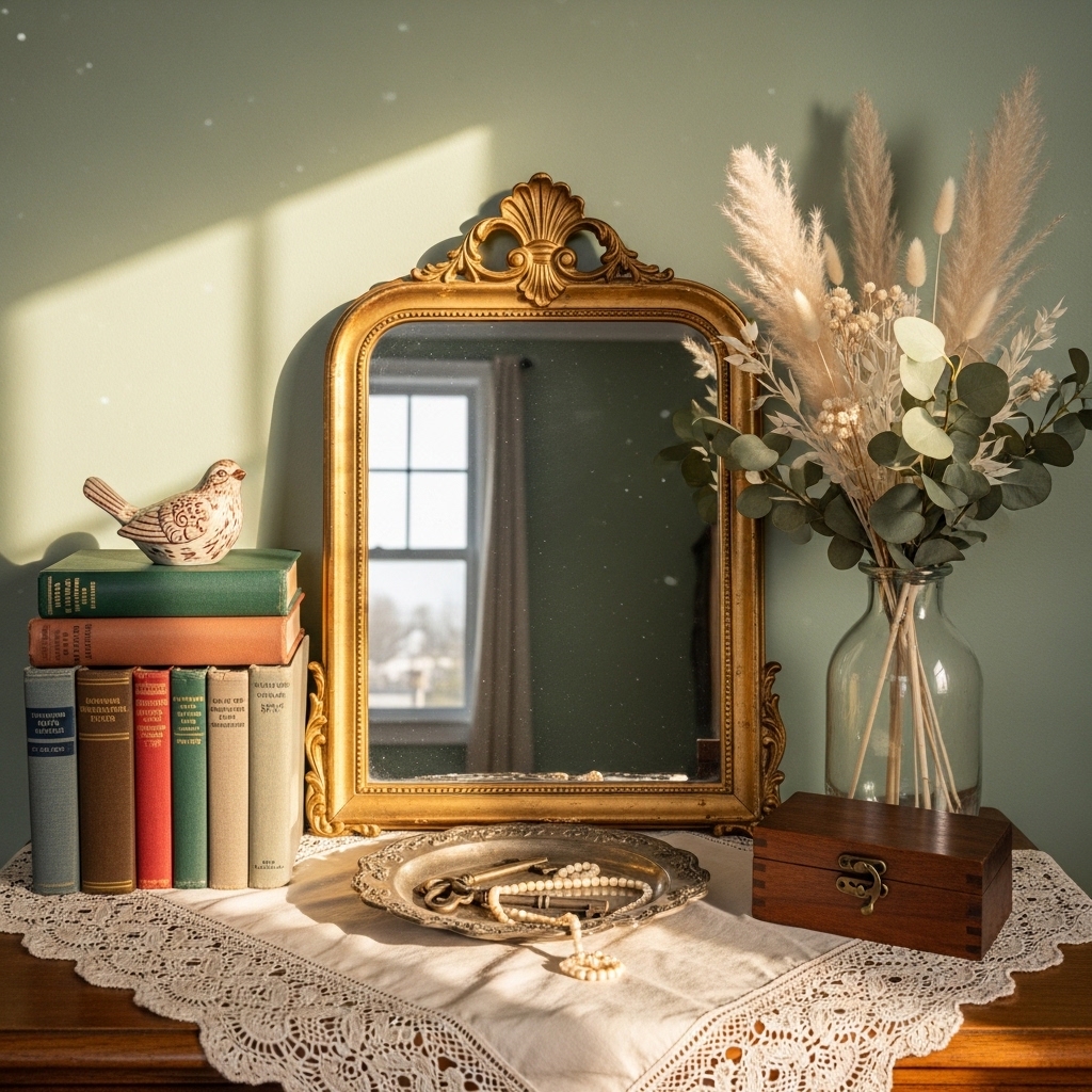 Pro Tip: Stick to a consistent color palette so thrifted decor looks intentional and cohesive.