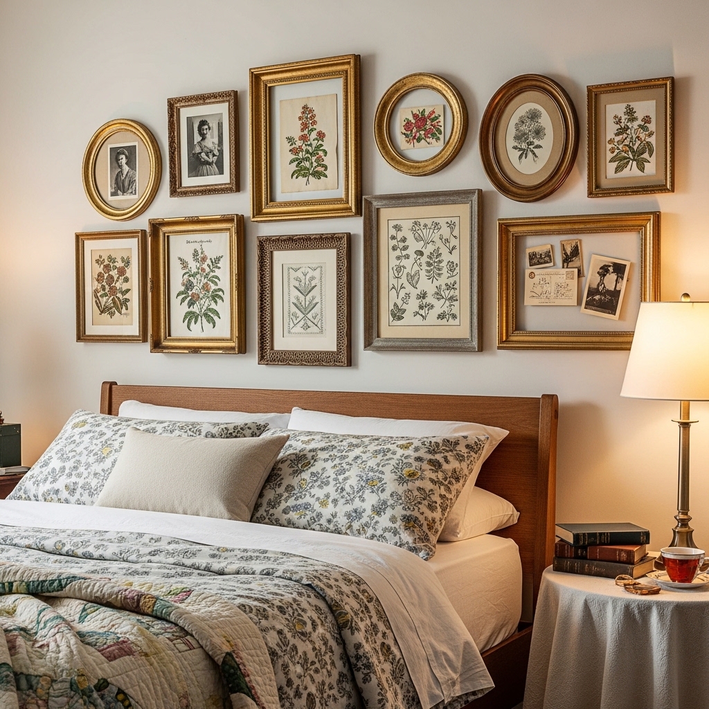 Thrift stores often have a wide variety of picture frames that can be repurposed for a gallery wall. Mixing different shapes and frame styles creates a unique and personalized display that adds character to your bedroom walls.