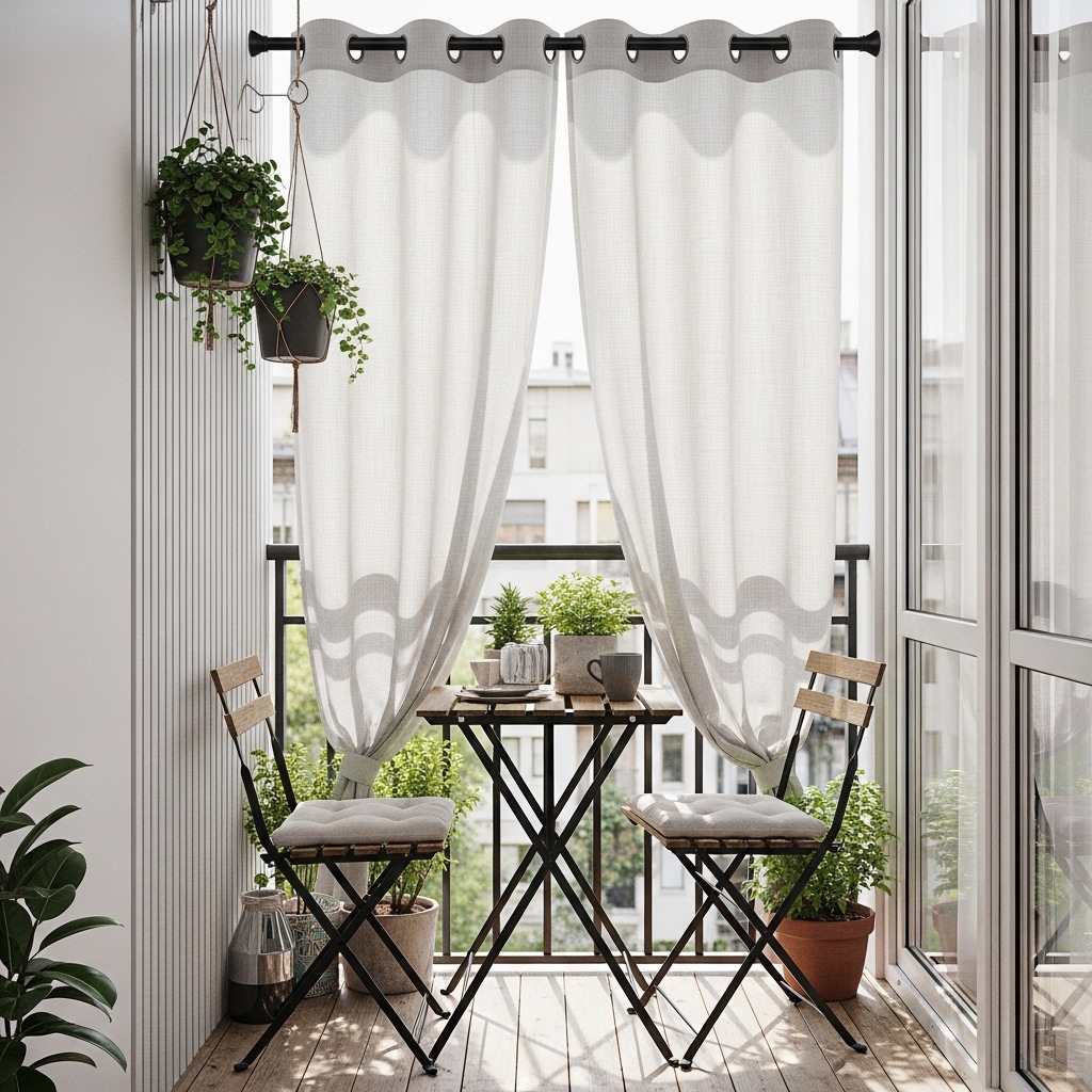 Without this, full curtains make tiny balconies feel like dark closets instead of airy outdoor spaces.