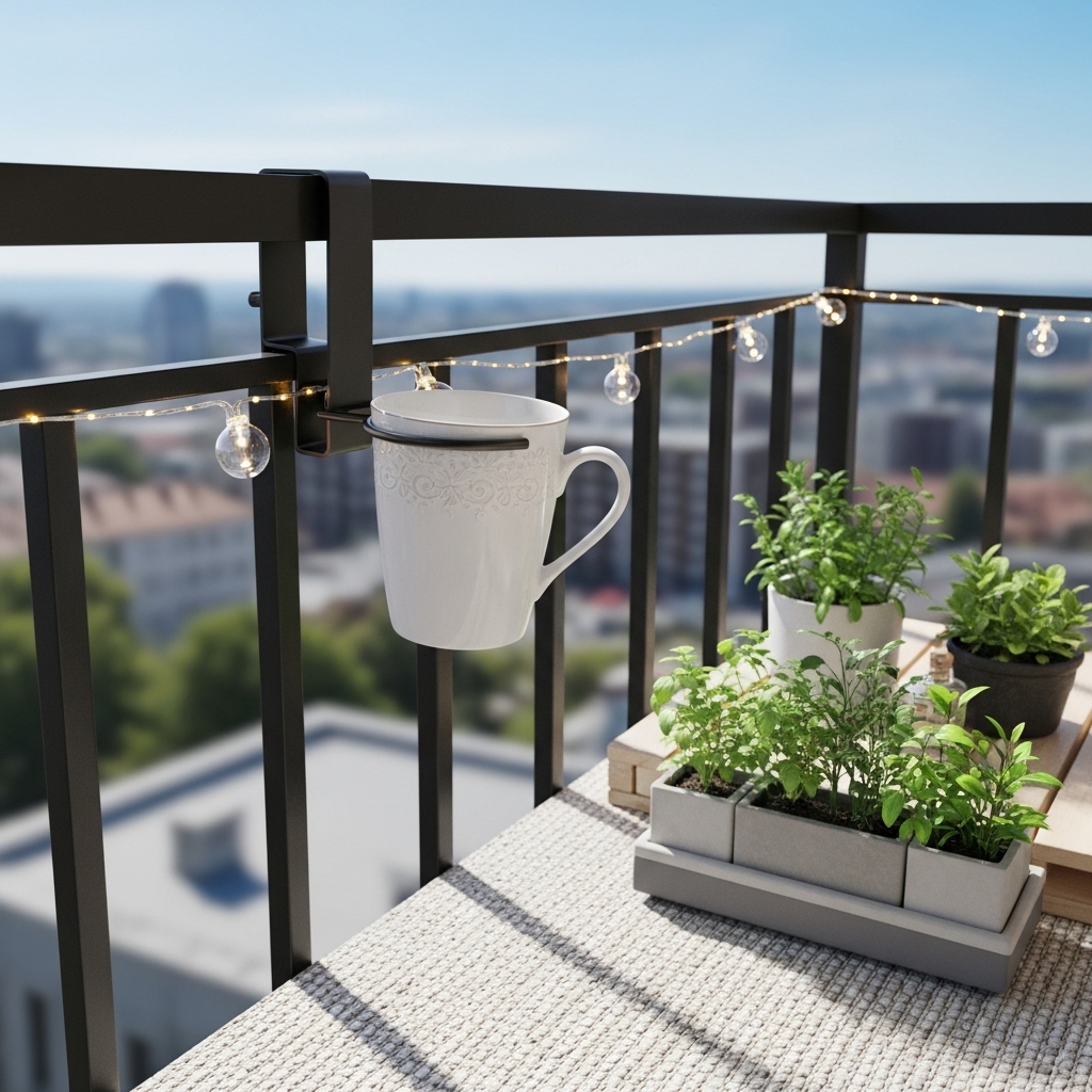 For ultra-small balcony owners, use this when you need a spot for your phone, candle, or coffee cup.