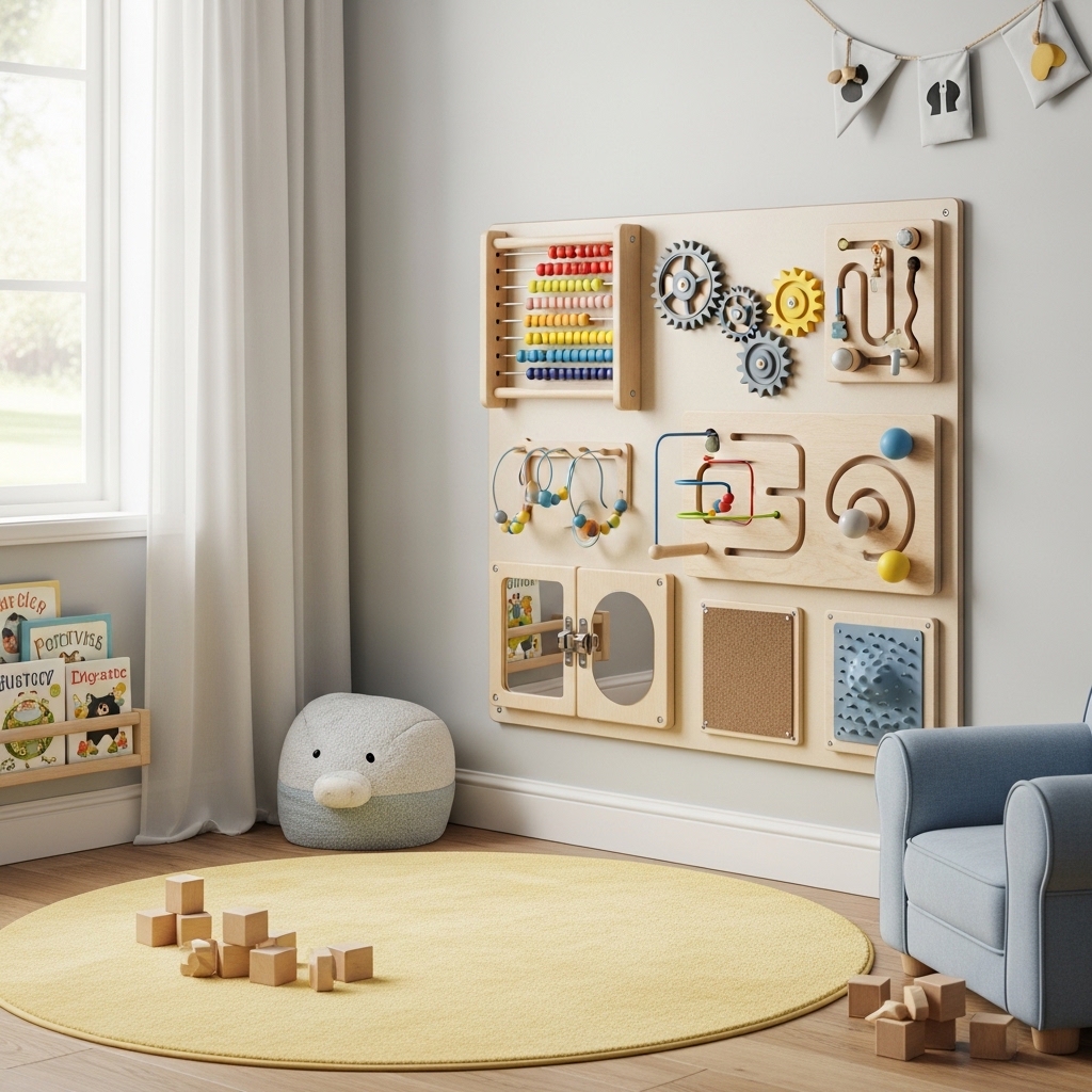 4. Install a Wall-Mounted Activity Board for Fine Motor Play