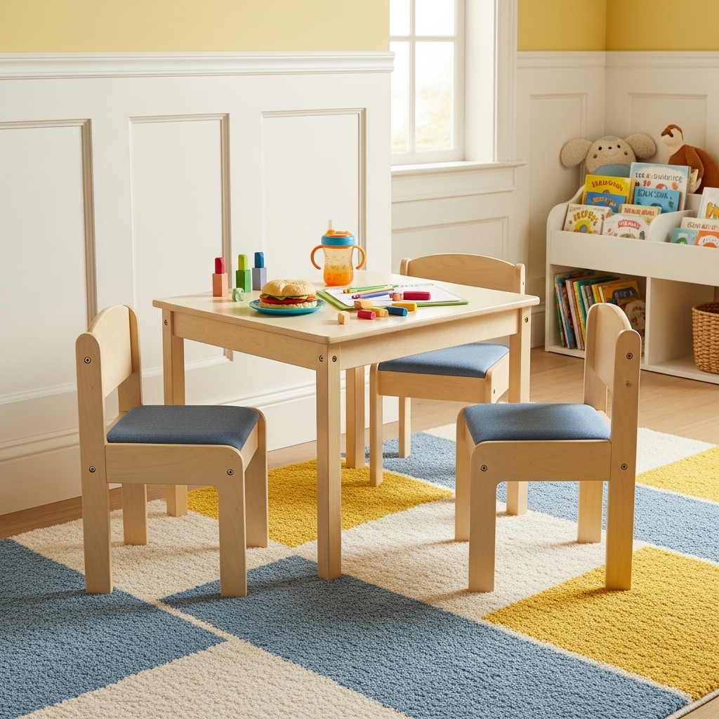 Place a small wooden table with two toddler-sized chairs in the corner of the room.