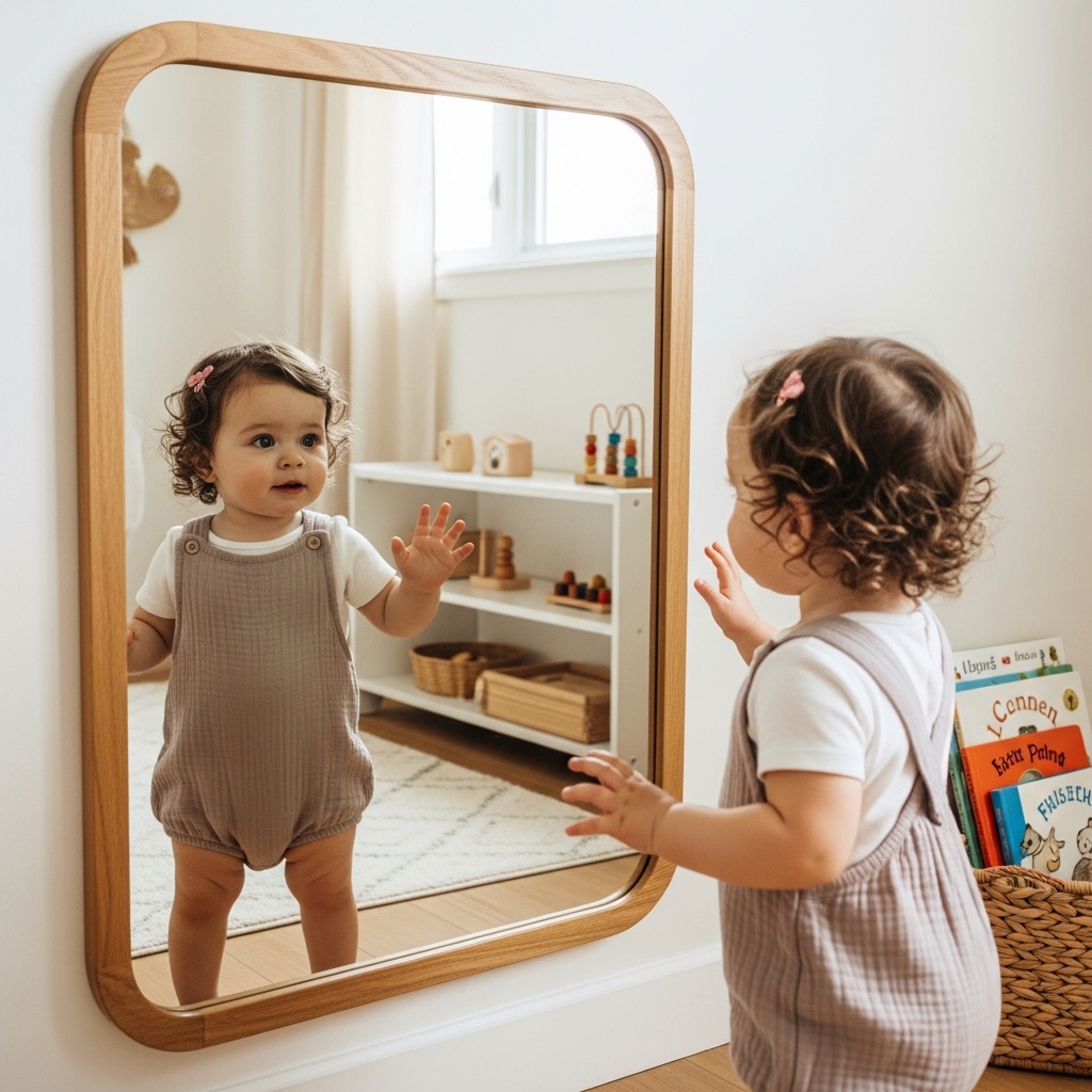 A mirror at adult height is useless to a toddler. A toddler-height mirror becomes a daily learning tool.