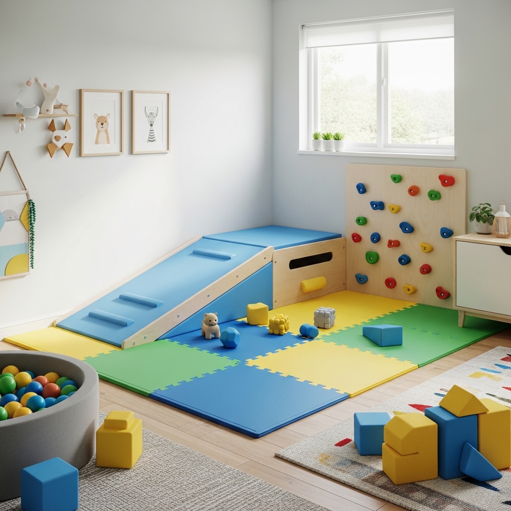 Mistake to Avoid: Do not place your climbing zone near windows or furniture with sharp corners. Toddlers fall in unexpected directions.