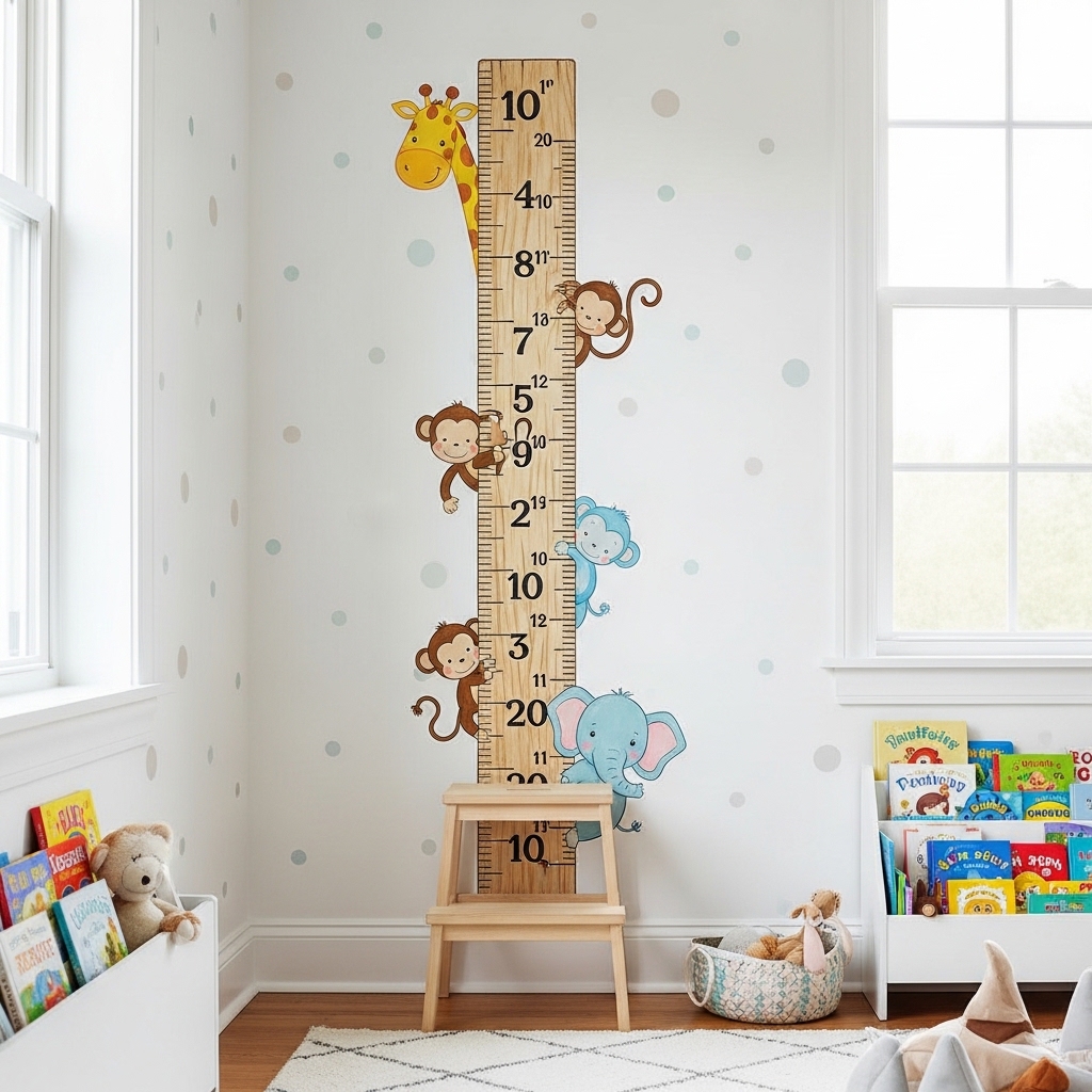 Pro Tip: Paint small animals or stars at each inch mark. Decorative details make measurement fun for toddlers.