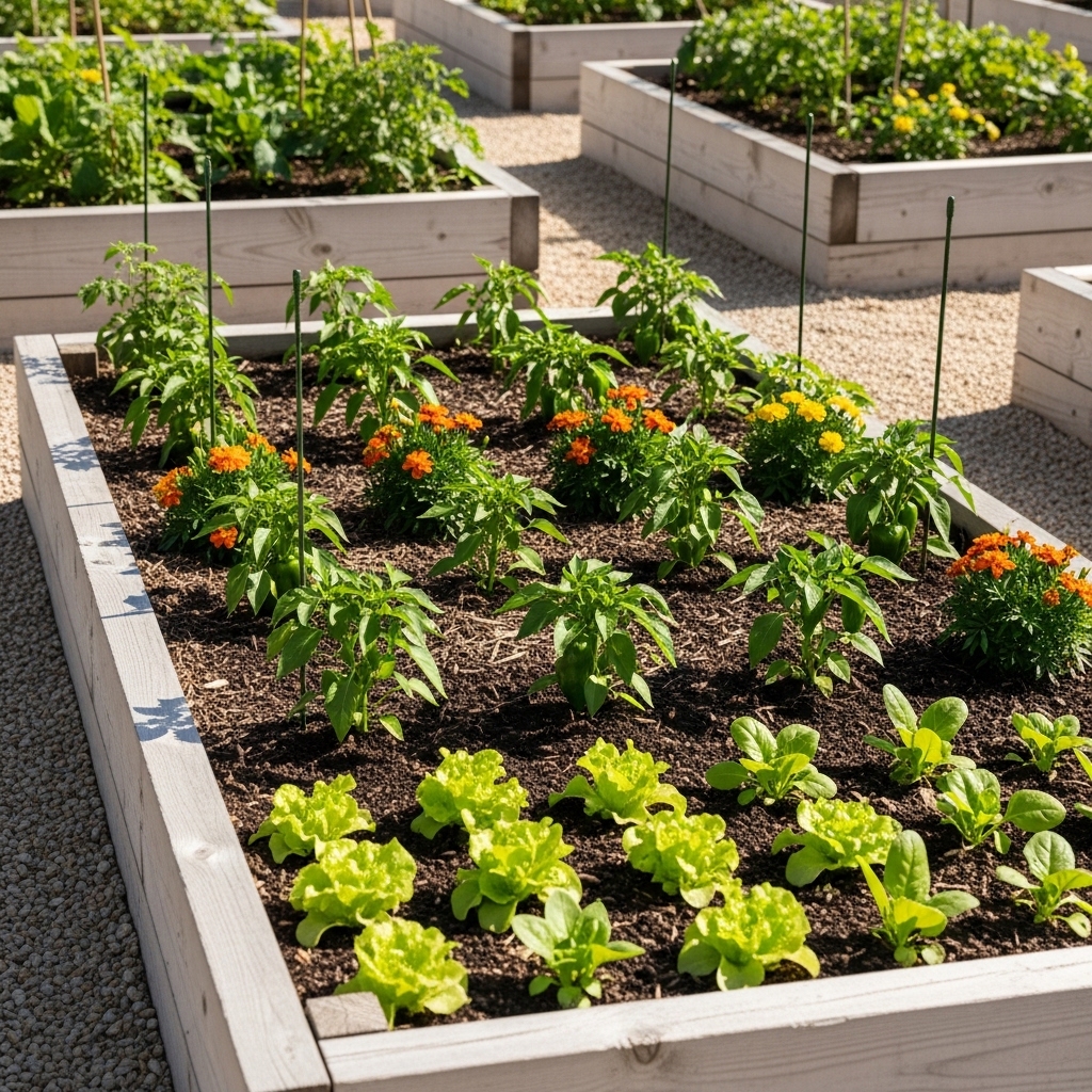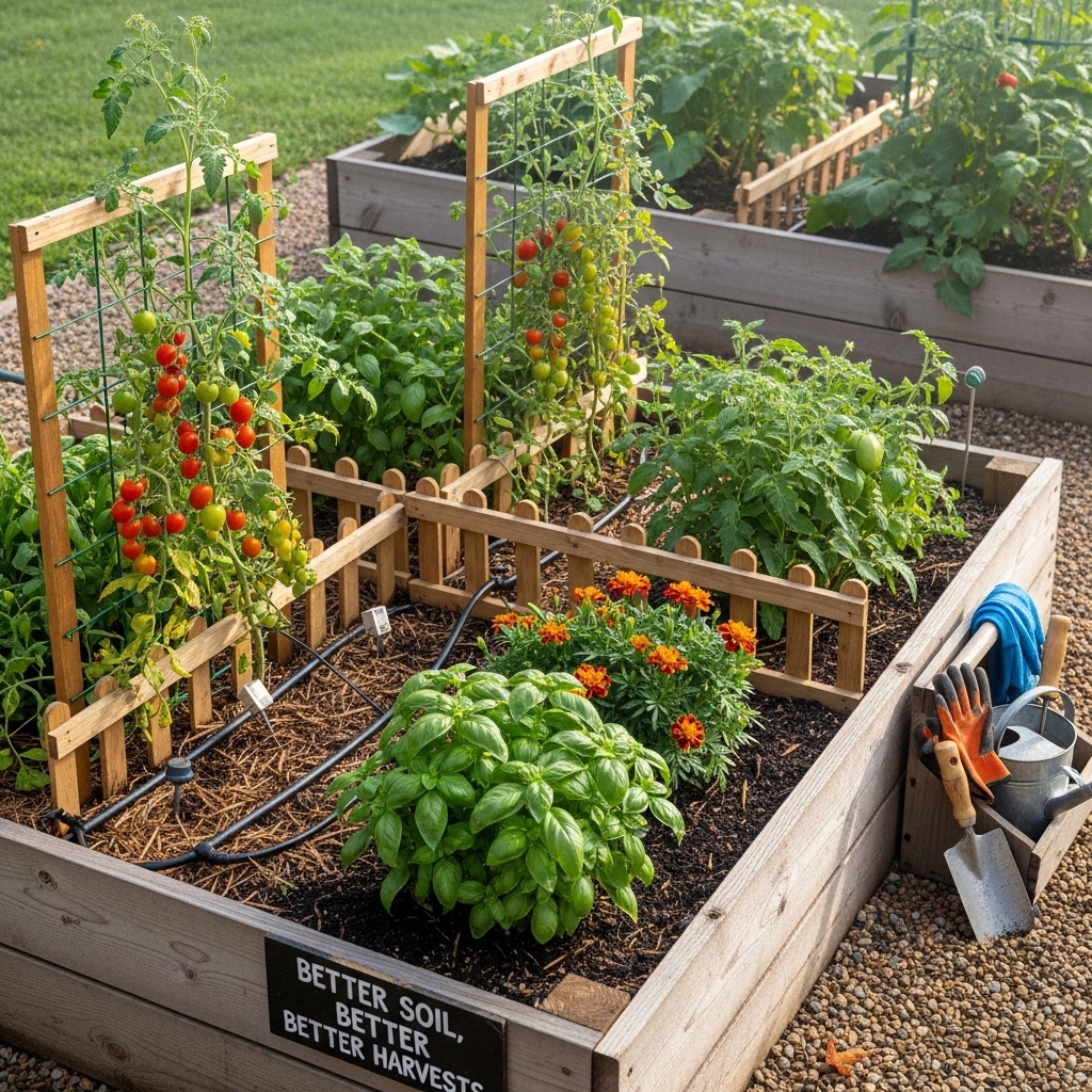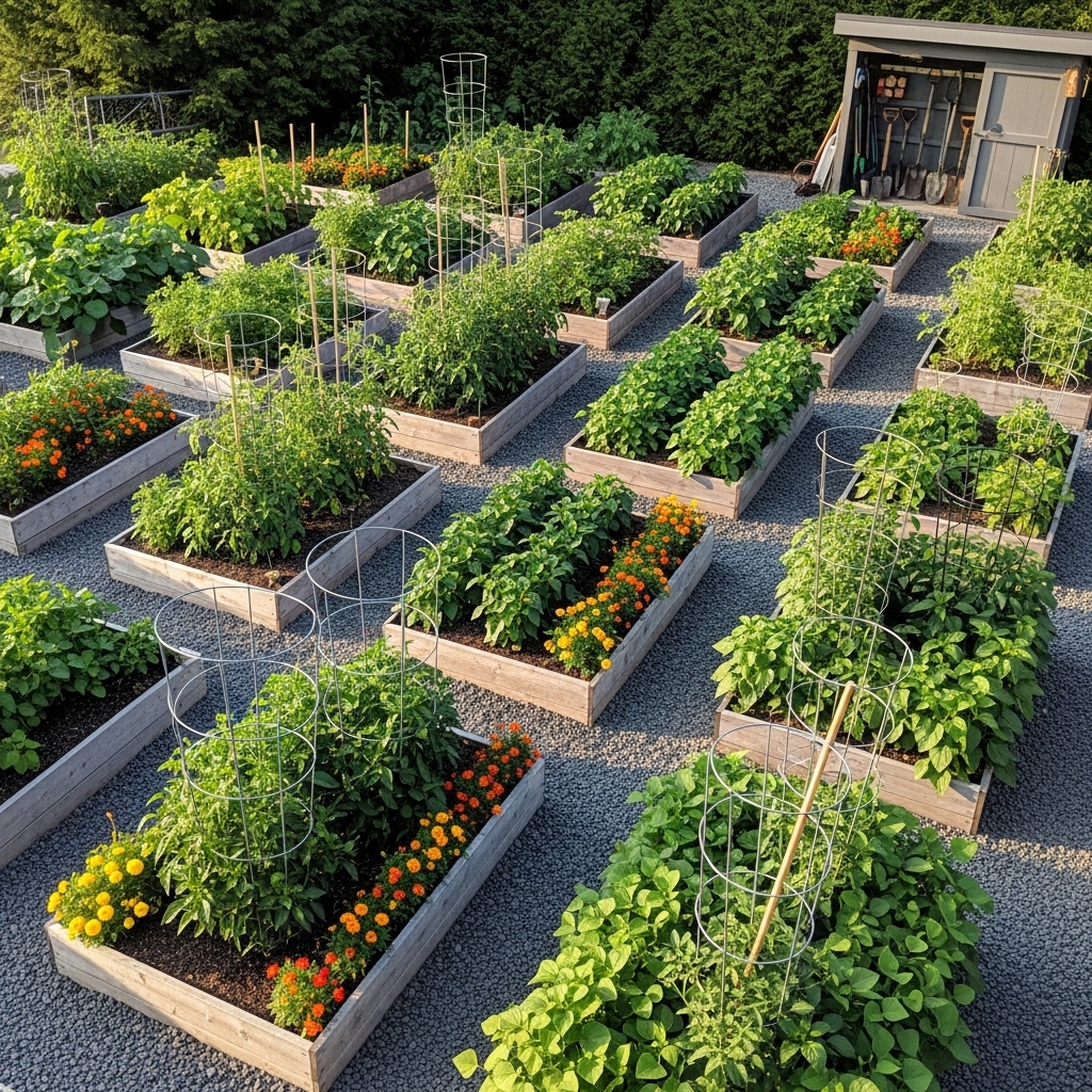 Raised beds improve root health and reduce weed problems, making maintenance easier.