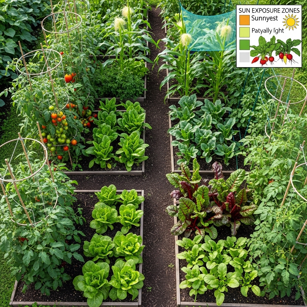 Place sun-loving vegetables like tomatoes and peppers in the brightest areas, while leafy greens can tolerate partial shade. Observe your garden throughout the day before planting.