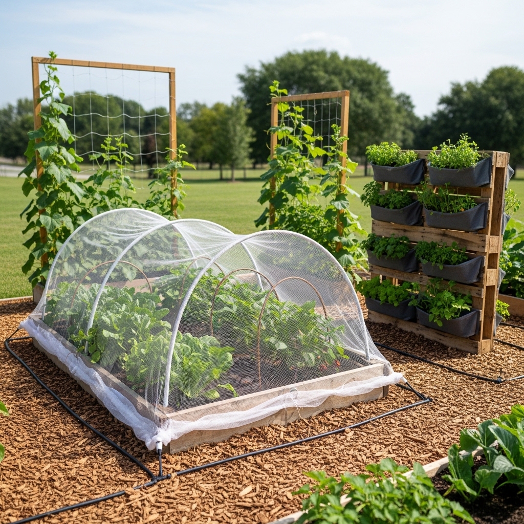 Install netting or row covers to protect vegetables from insects and animals.