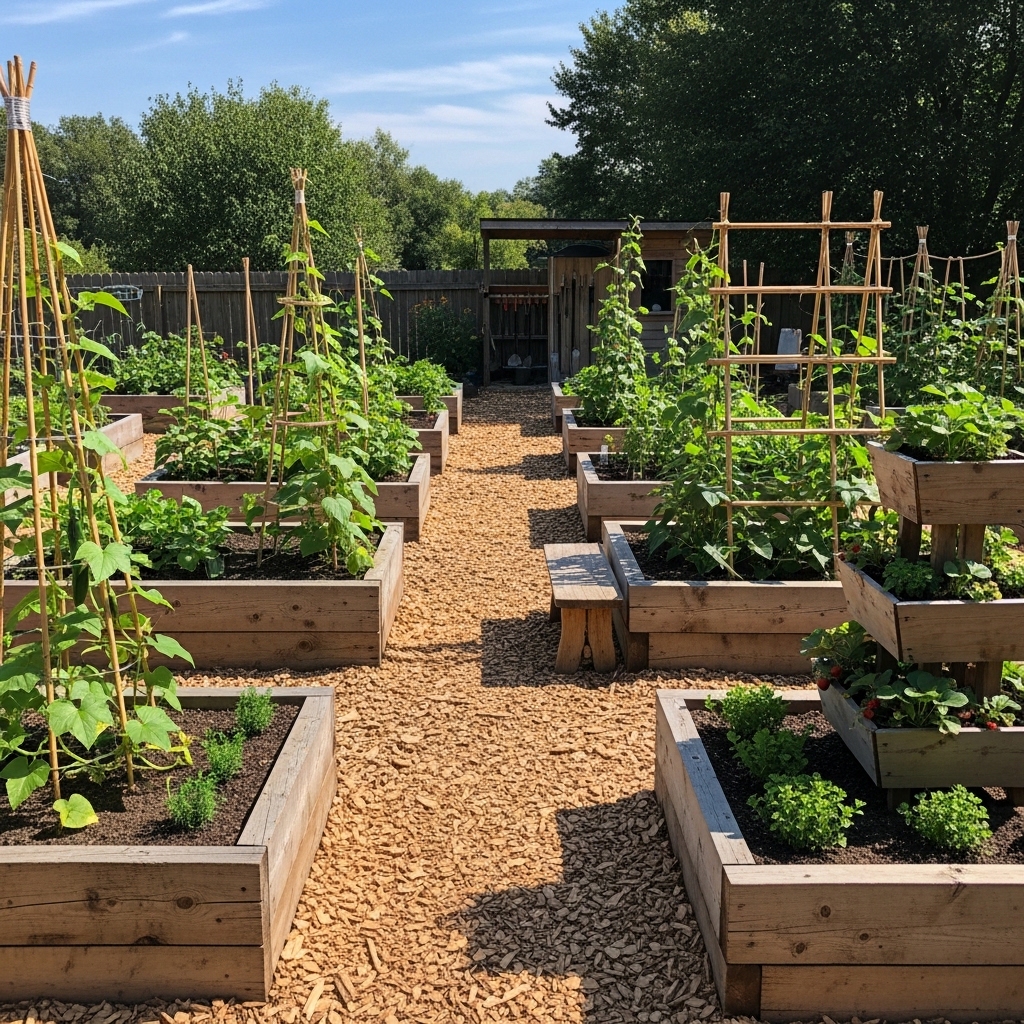 Use trellises, cages, or vertical supports for climbing vegetables like beans, cucumbers, and tomatoes.