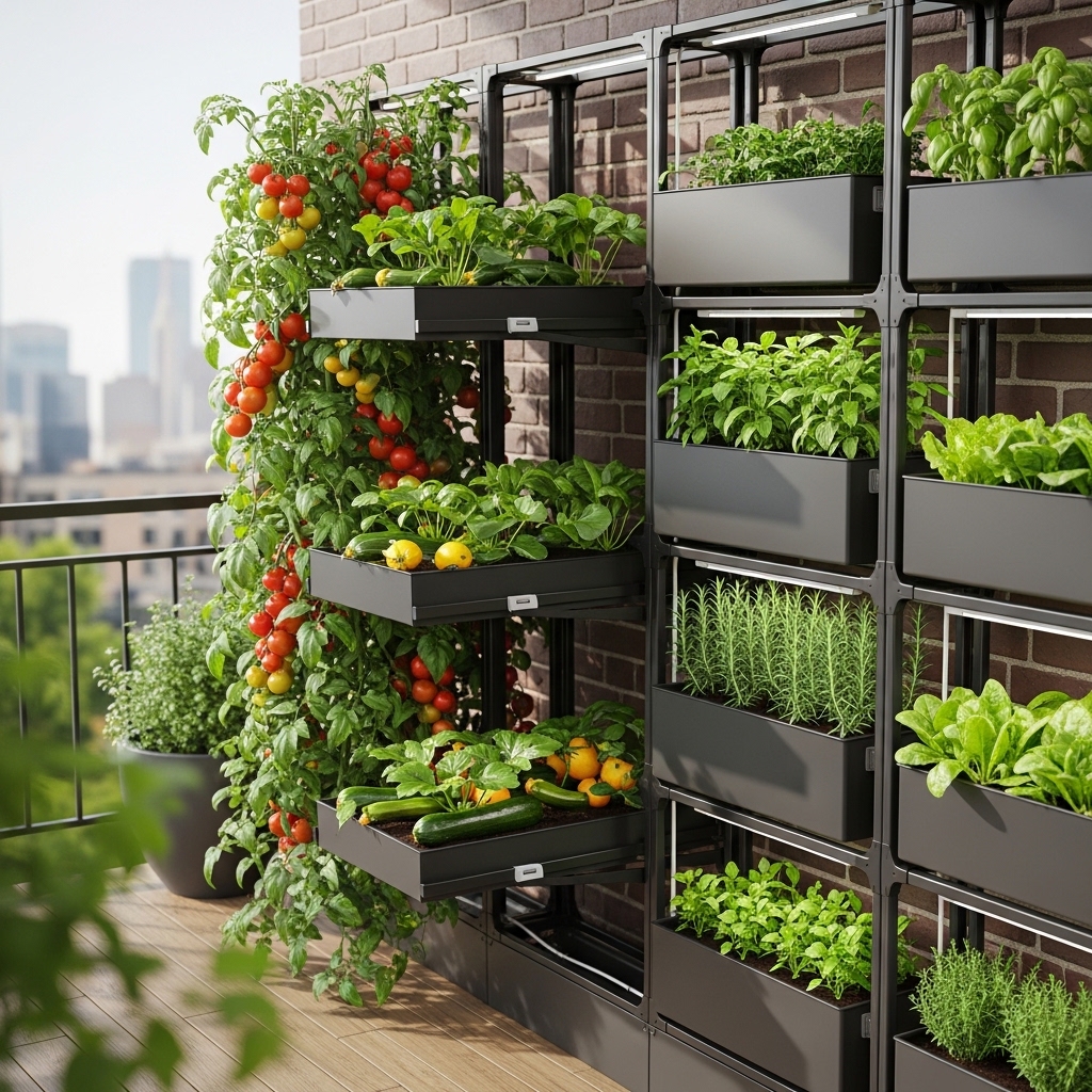 This setup works because it multiplies planting space without expanding your footprint, making it perfect for compact areas. It also keeps plants organized and easier to maintain.