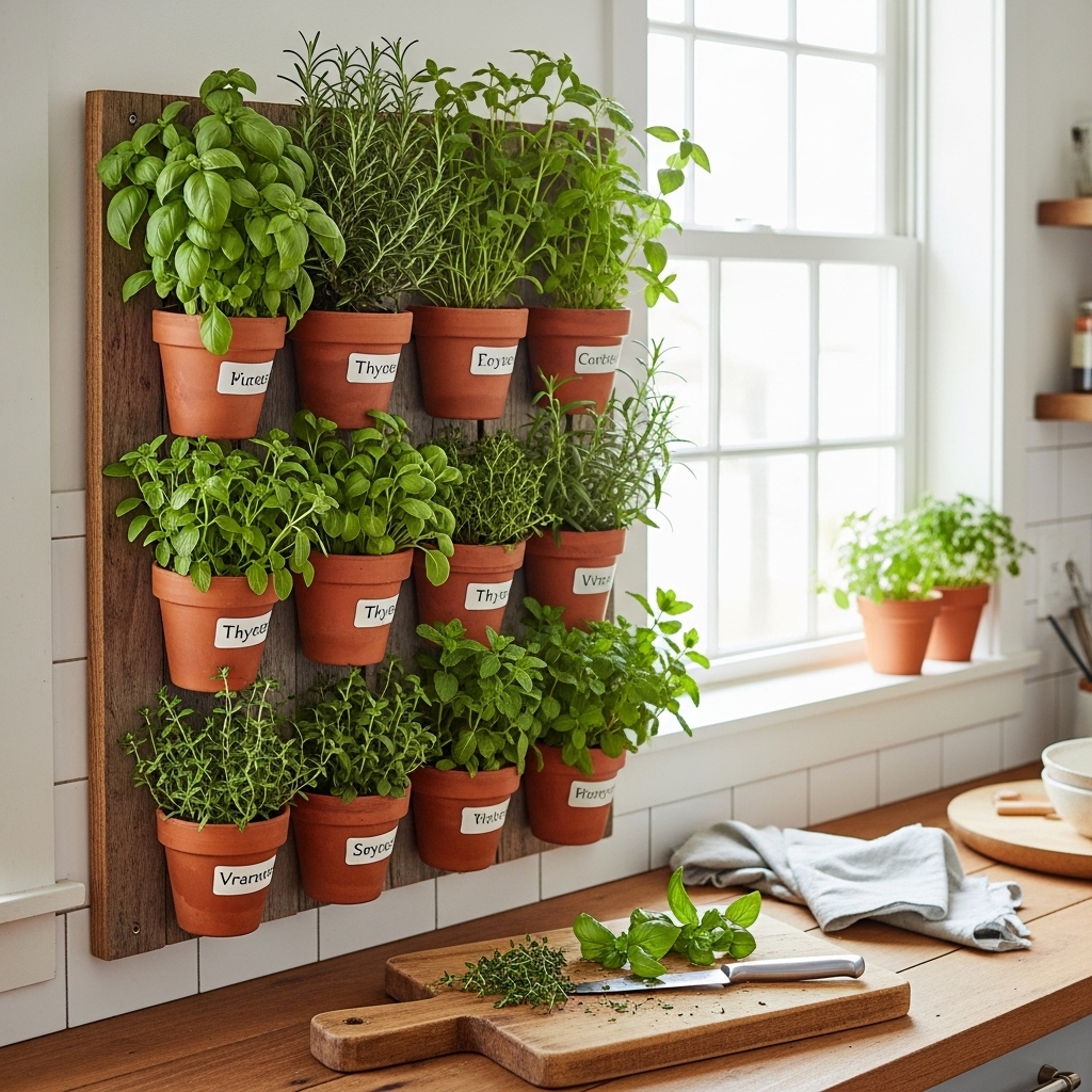 This works because it combines accessibility with vertical efficiency, turning unused wall space into a productive herb station.