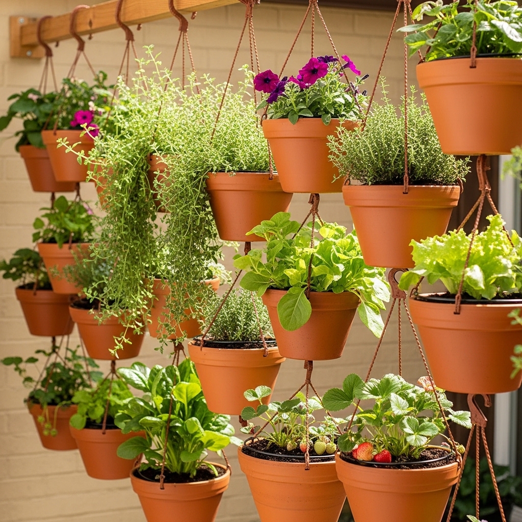This works because hanging systems free up floor space while allowing flexible rearrangement based on sunlight and plant needs.