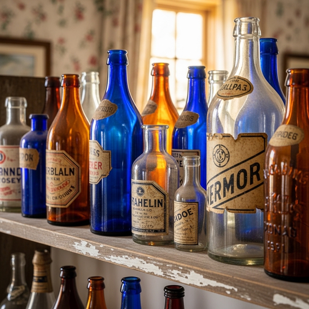 Collect old bottles in blue, green, and amber. Line them on a windowsill. The sun will shine through the glass.