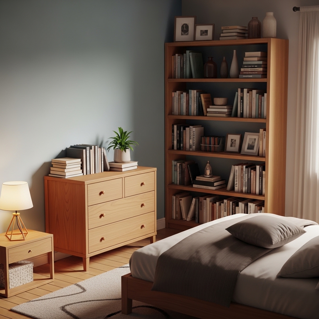 Placing bookshelves, wardrobes, or dressers against shared walls helps reduce noise from neighboring rooms.