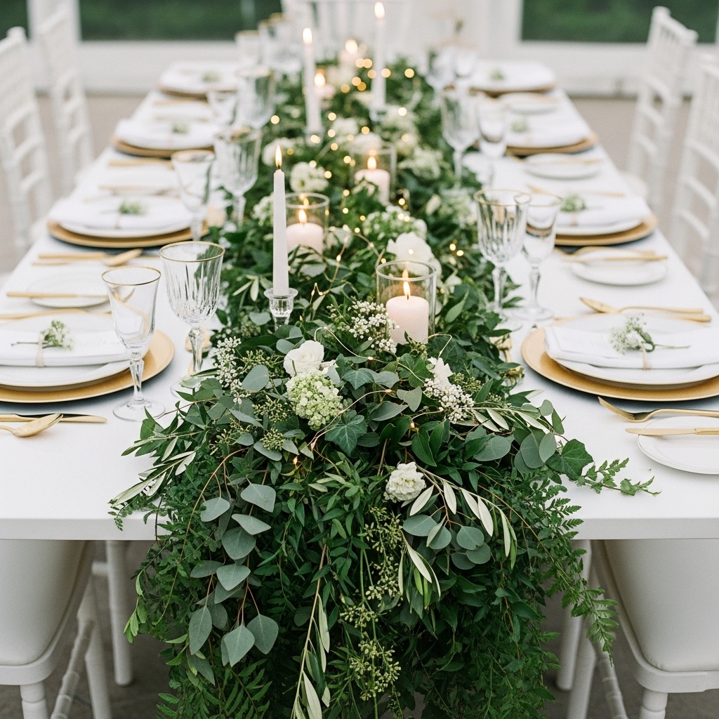 Pro Tip: Secure greenery with floral wire to maintain structure throughout the evening.