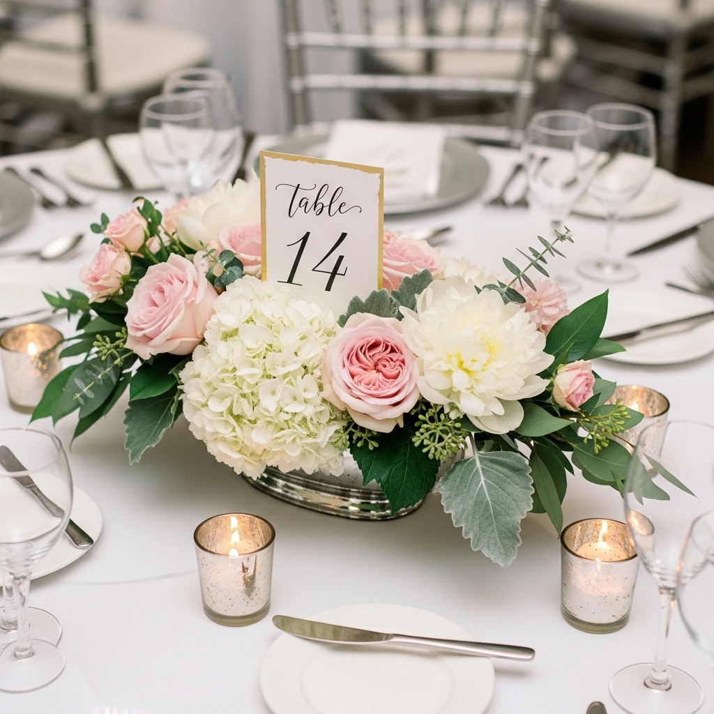 Pro Tip: Use acrylic or metallic number stands for a refined finish.